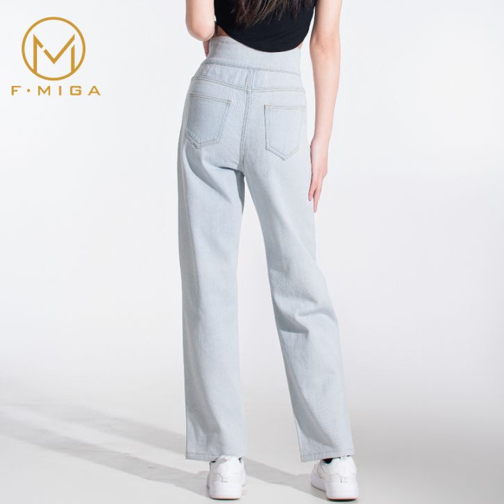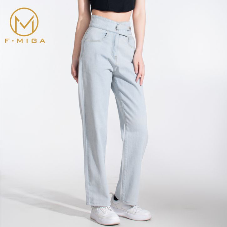F·MIGA C33 Korean Style Wanita High kasual Kulot Bagy Jeans Panjang Celana Jeans Wanita - Biru Muda