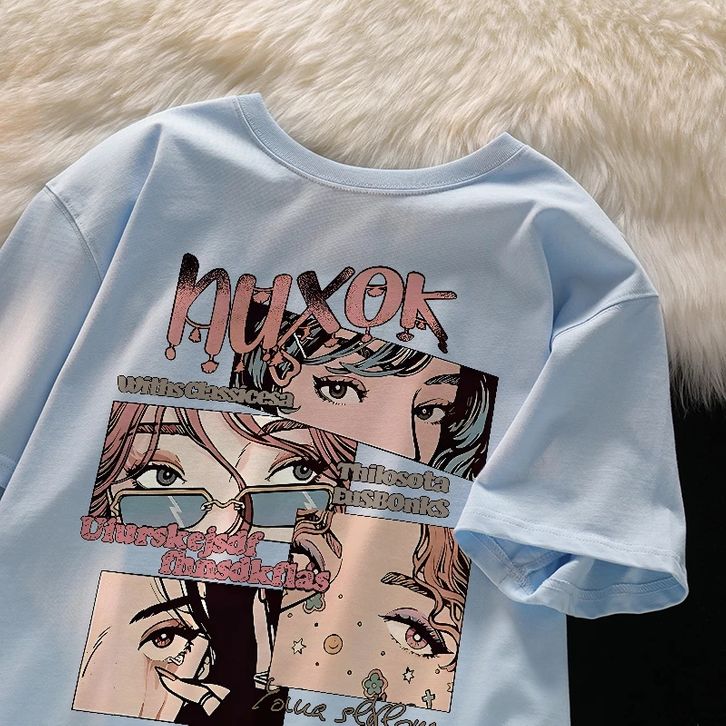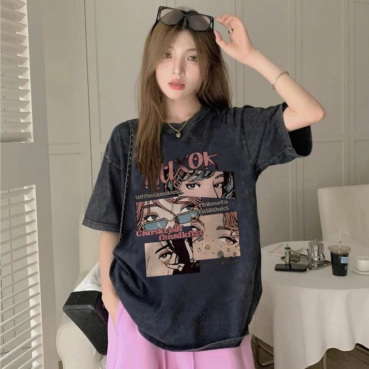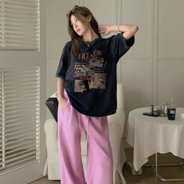 T-shirt Lengan Pendek Baju Kaos Oversize Wanita Baju kaus wanita korea Baju Atasan Wanita Terbaru Cetakan gadis Carter