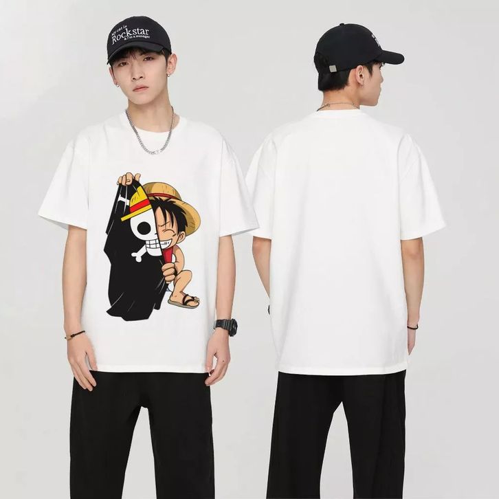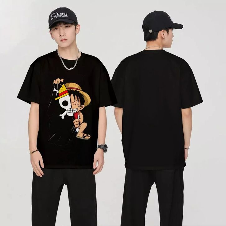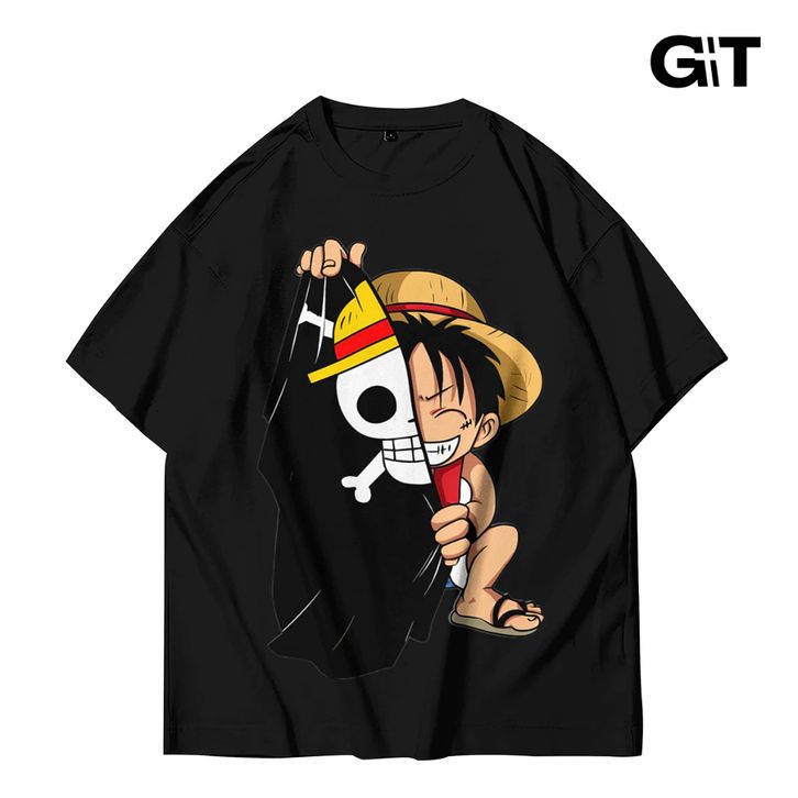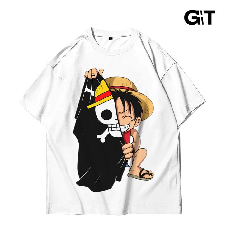 KAOS OVERSIZE PRIA WANITA DEWASA LENGAN PENDEK T-SHORT TEE ONE PIECE FLAG LUFFY JUMBO S-5XL