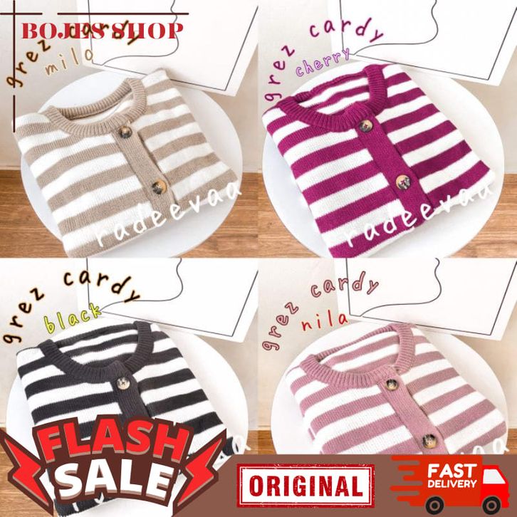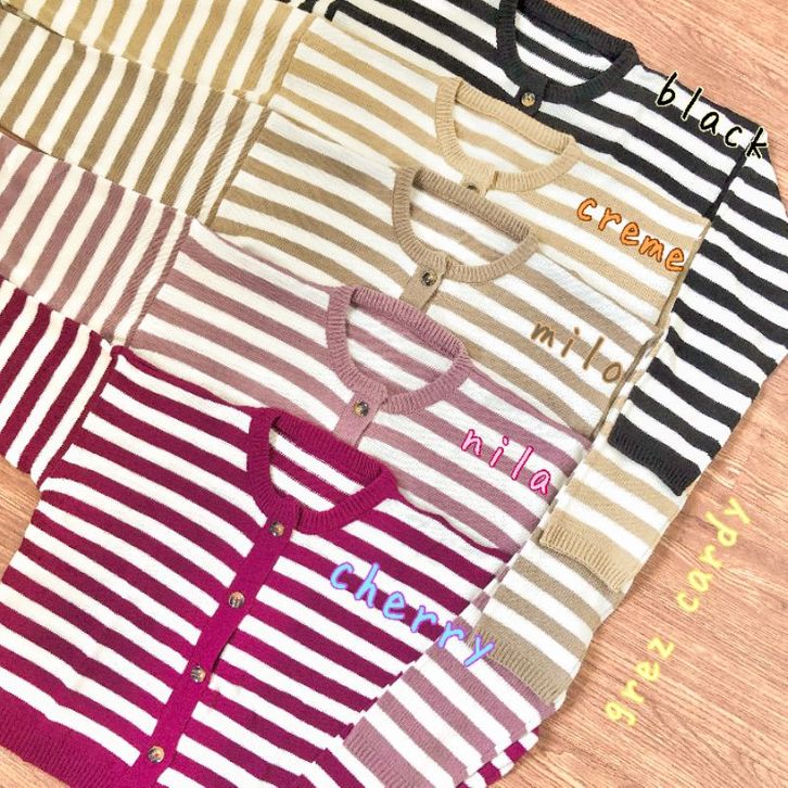 Cardigan Rajut Garis Grez Cardy Crop Motif Stripe Oversize Knit Atasan Wanita