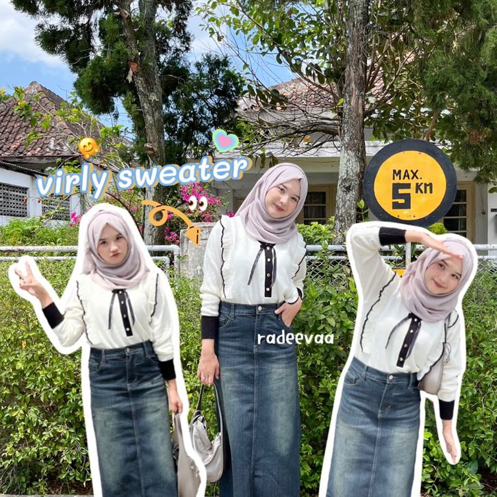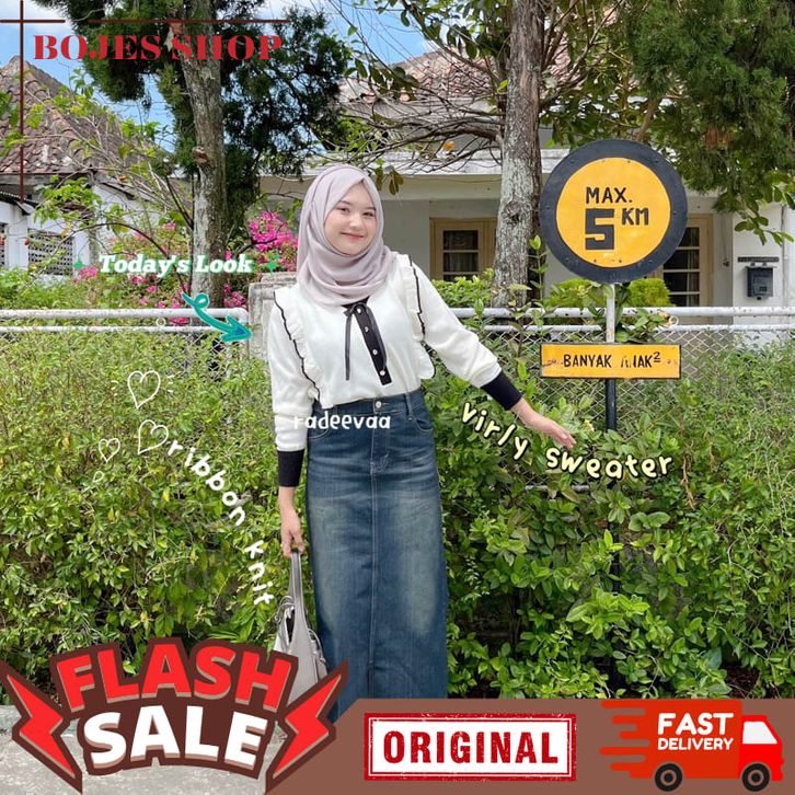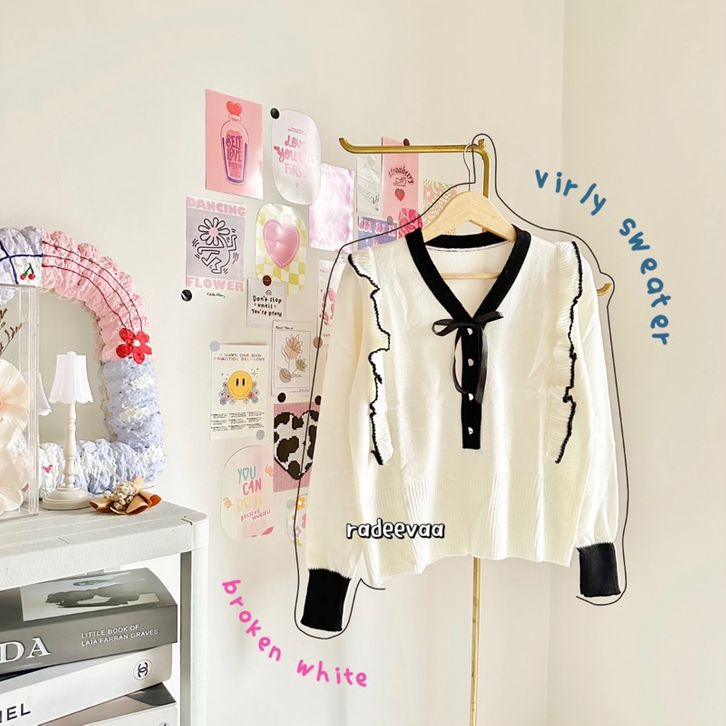 Virly Sweater Ruffle and Ribbon Knit Atasan Rajut Korean Pita