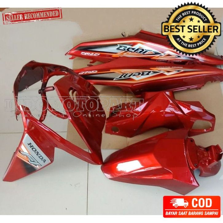 COVER BODY FULL HALUS HONDA BEAT F1 WARNA MERAH PLUS STRIPING