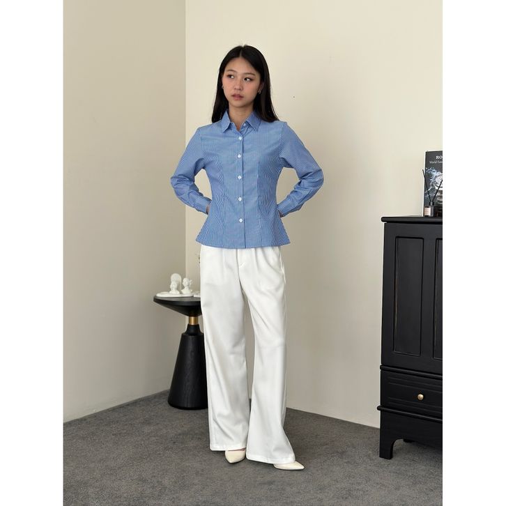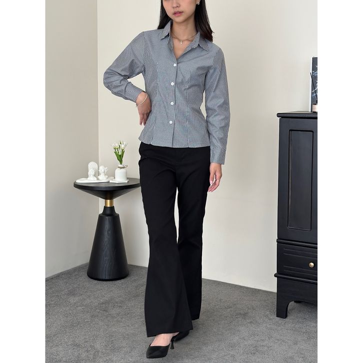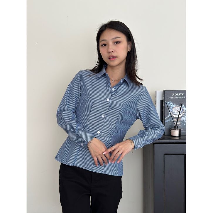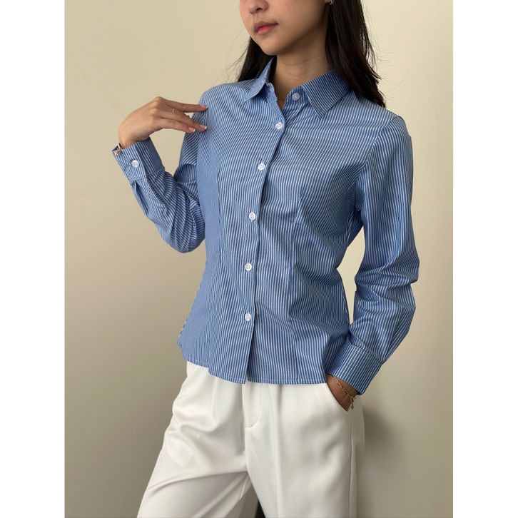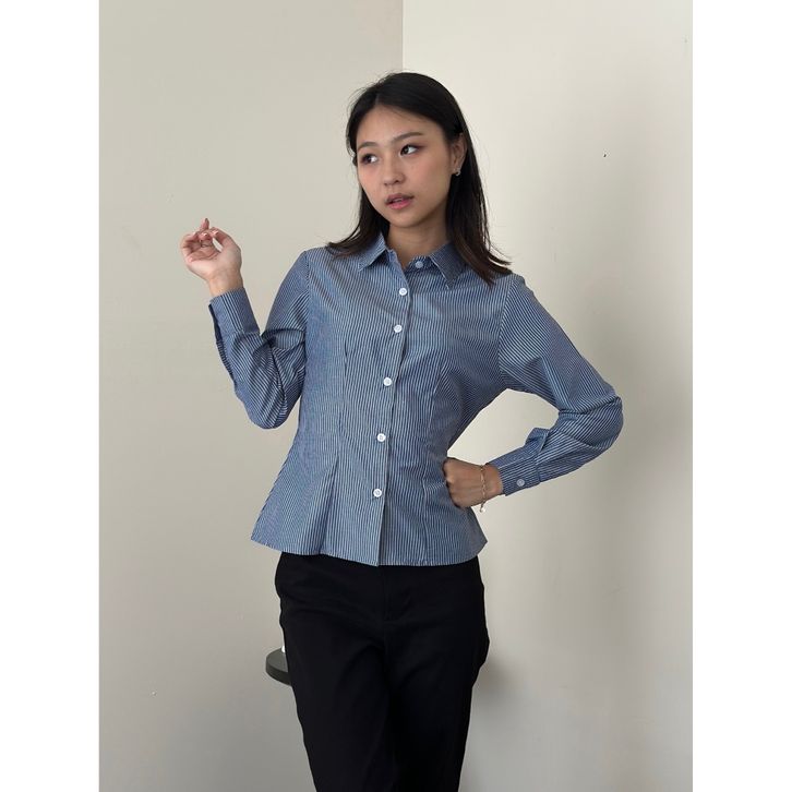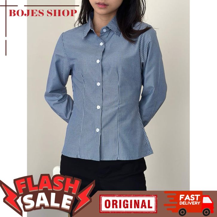ASOKA Lanie Fitted Shirt 1319 - Kemeja Salur Katun Kantor Wanita - Fitted Stripe Shirt Slim Fit Long Sleeve