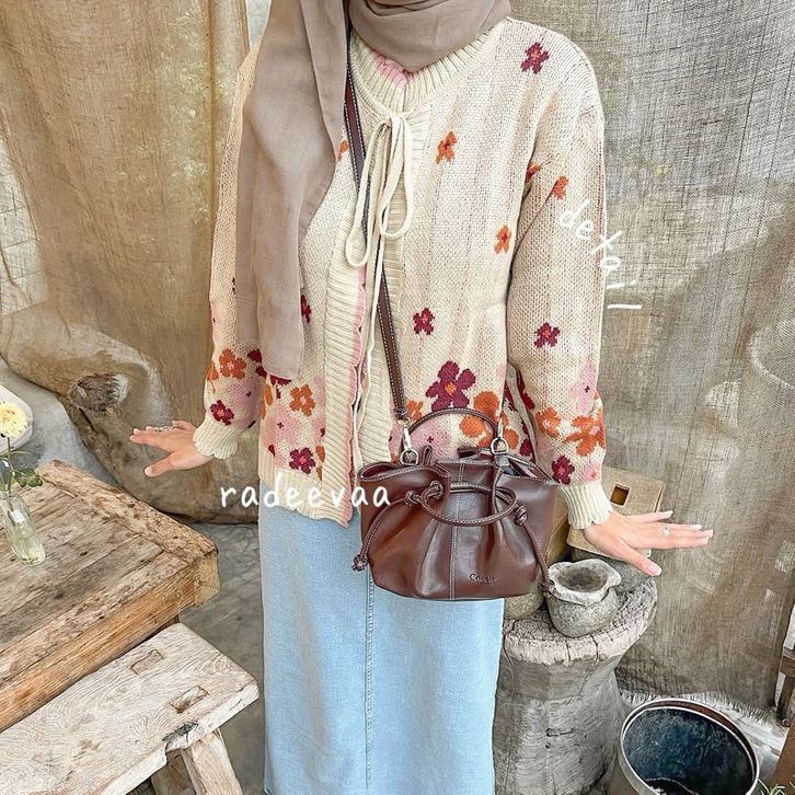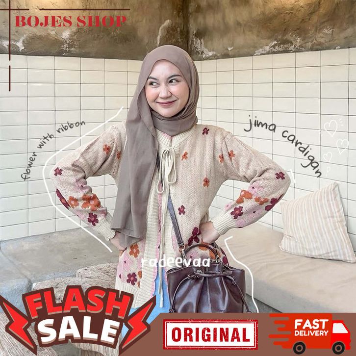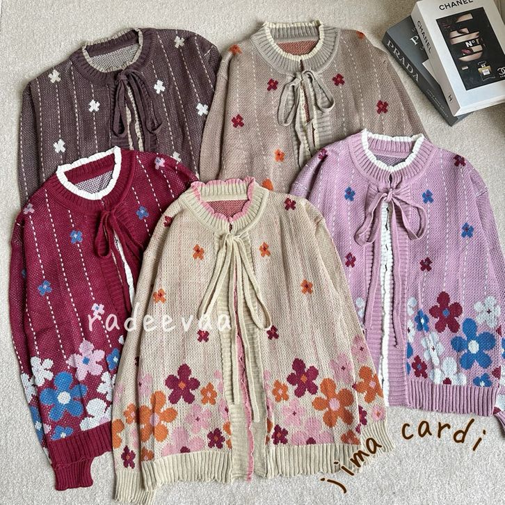 JIMA FLOWER CARDIGAN KNIT ATASAN RAJUT OUTER MOTIF BUNGA JAPAN KOREAN STYLE