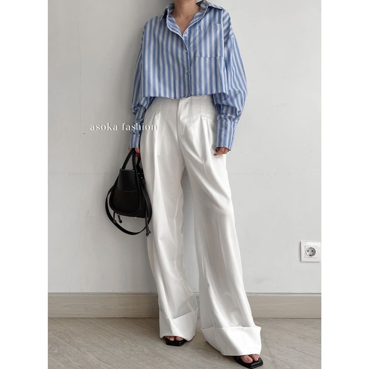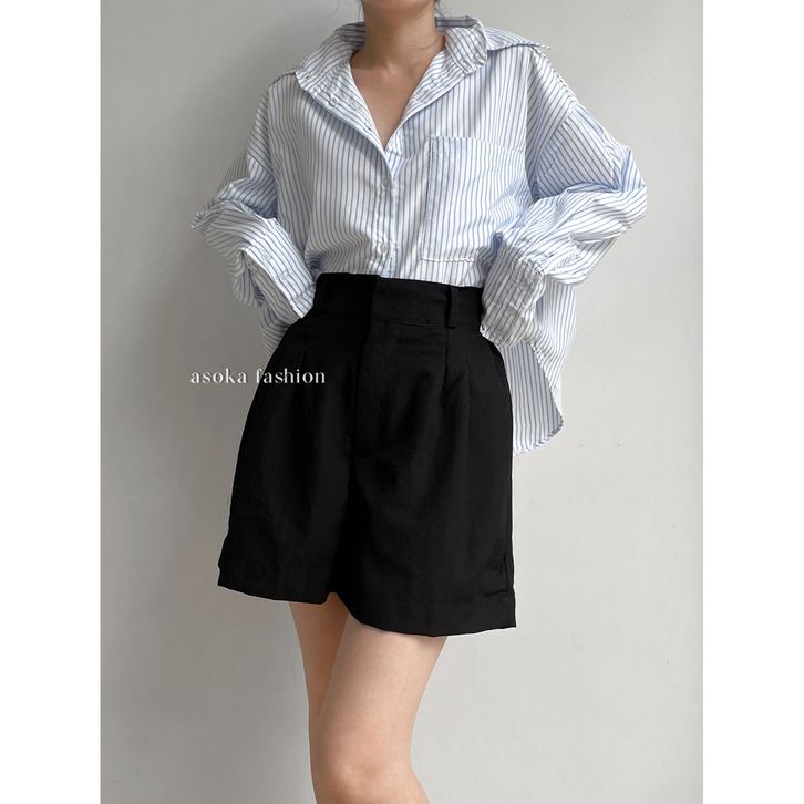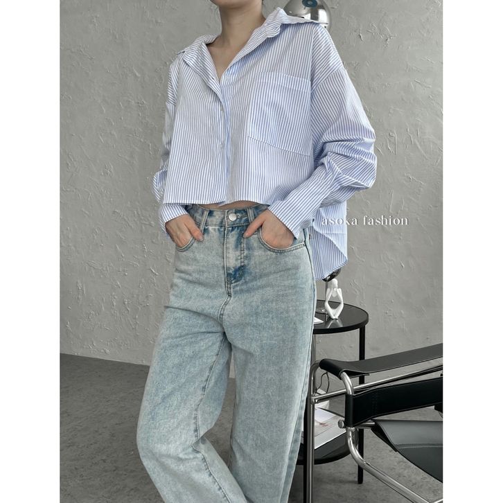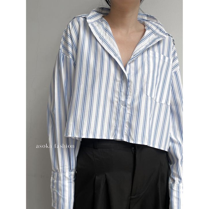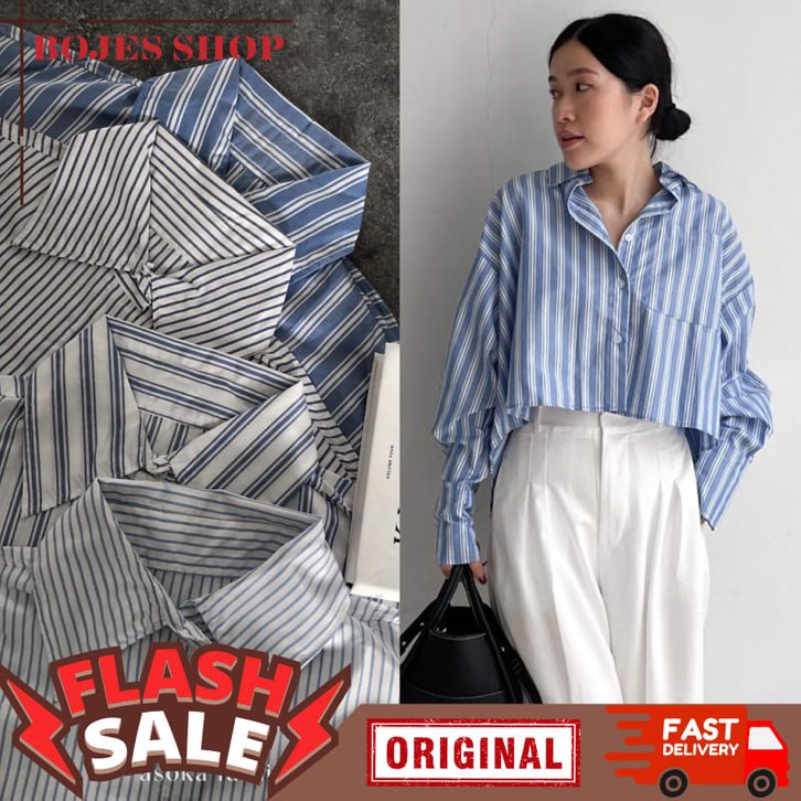ASOKA Theresa Shirt 2156 - Stripe Shirt Kemeja Crop Wanita - Kemeja Katun Salur Garis - Kemeja Oversize