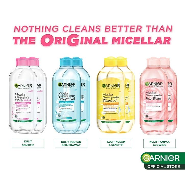 (PAKET HEMAT) Garnier Micellar Cleansing Water - 400ml x2 (Pembersih Wajah & Make Up)