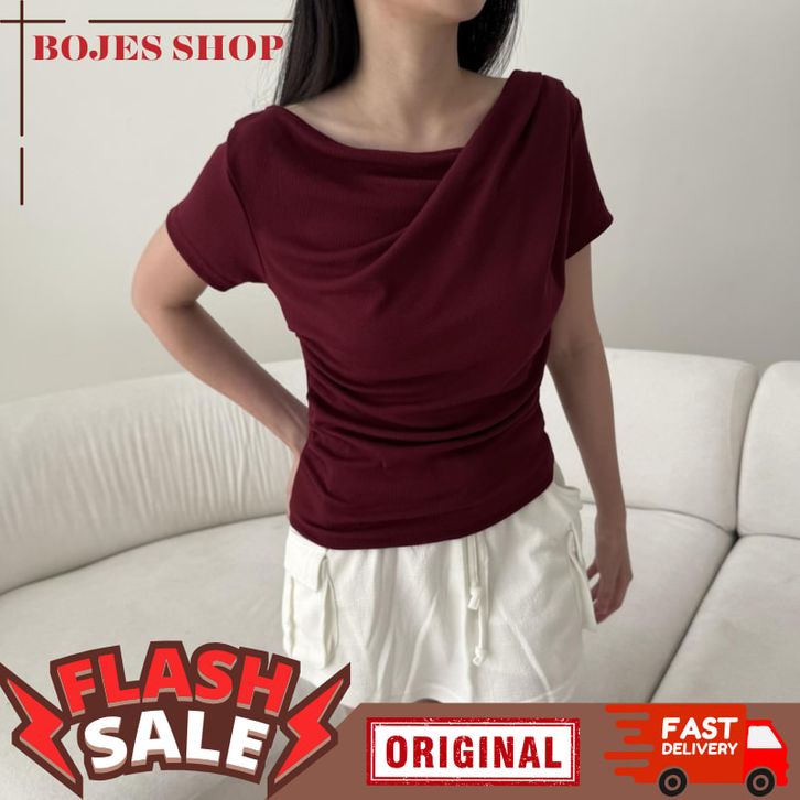 NU TOP Atasan Knit Wanita Korean Top Baju Knit Wanita Lengan Pendek Basic Short Sleeve