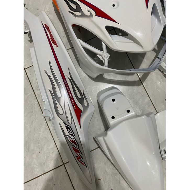 PROMO Cover full body halus yamaha mio smile warna putih plus striping api