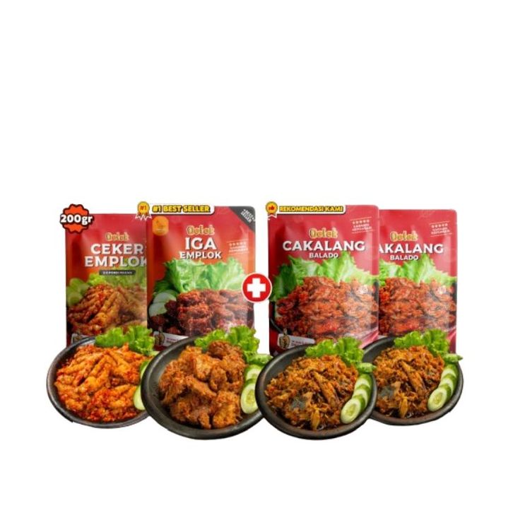 Oelek Mukbang Hemat 4 Lauk 100gr Cobain Dulu Bebas Pilih / Iga Emplok / Cakalang Balado / Cumi Cabe Ijo / Ayam Kecombran