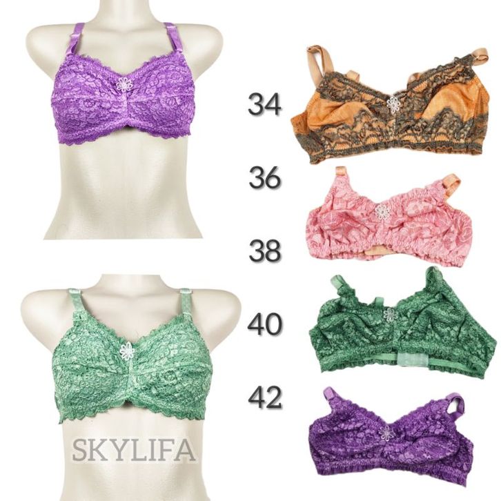 PROMO BH Bra Brukat ibu ibu Wanita Perempuan Dewasa Tanpa Kawat dan Tanpa Busa Ukuran 34 36 38 40 42