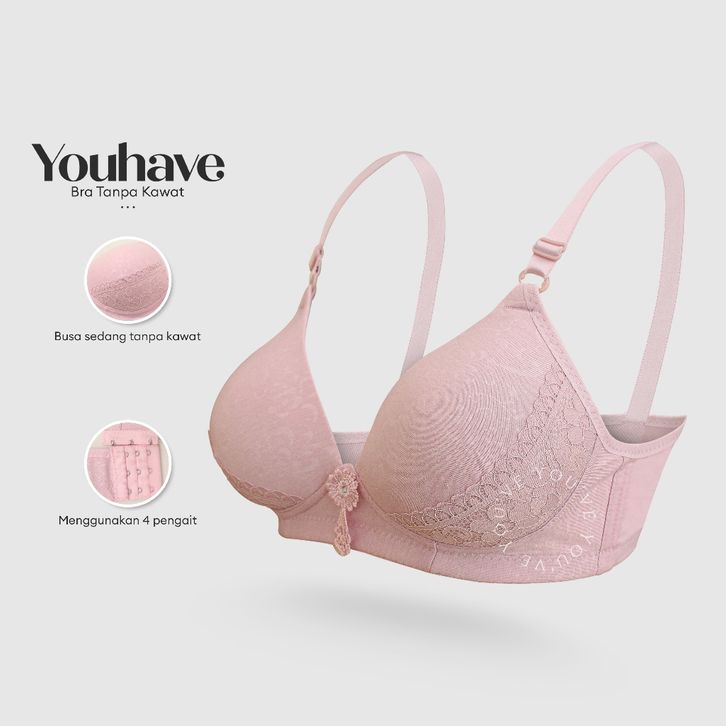 PROMO You've You Have BH Bra Wanita BH Tanpa Kawat Motif Bunga Brokat Be Ha 100093