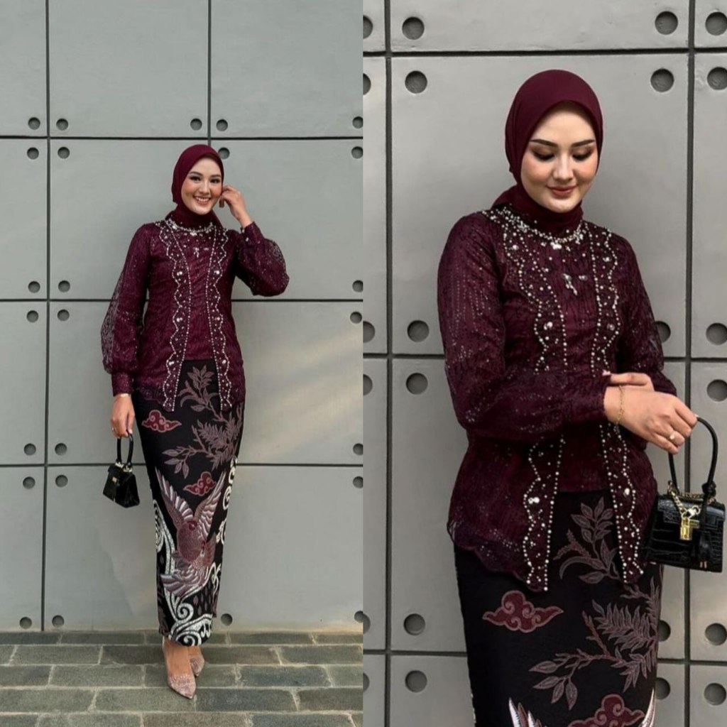 Set Kebaya Couple Mega Kutu Baru Wisuda Modern Set Kebaya Tunik Lamaran Tunangan Batik Baju Couple Kondangan Kebaya Atas