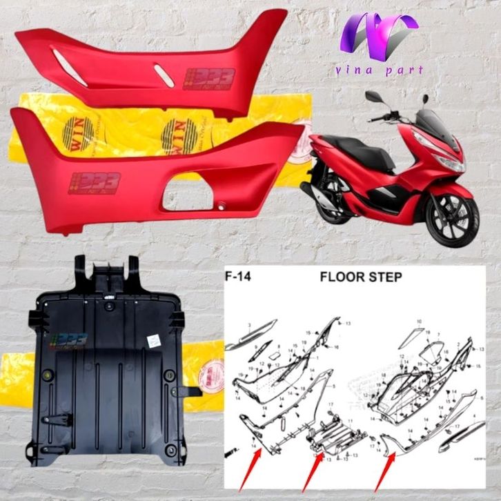 PROMO cover R L floor sirip bawah samping pcx 150 new lokal K97 kanan kiri set hitam putih merah