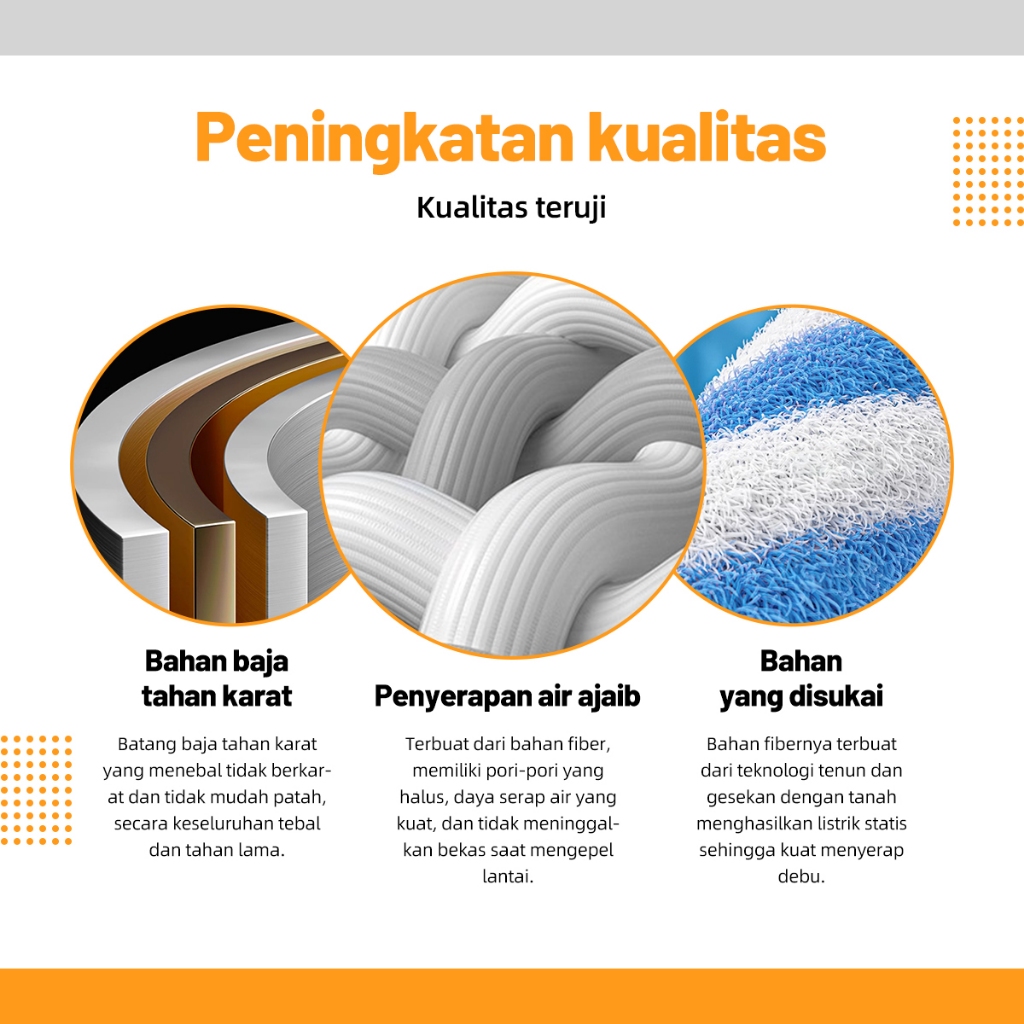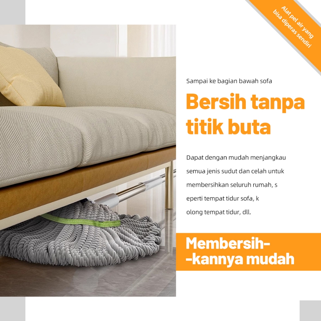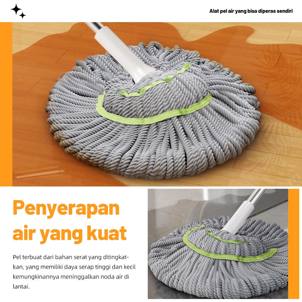 PEL LANTAI PUTAR OTOMATIS TWIST MOP MICROFIBER DAYA SERAP TINGGI LEPAS PASANG KAIN PEL PERAS PUTAR OTOMATIS ALAT PE