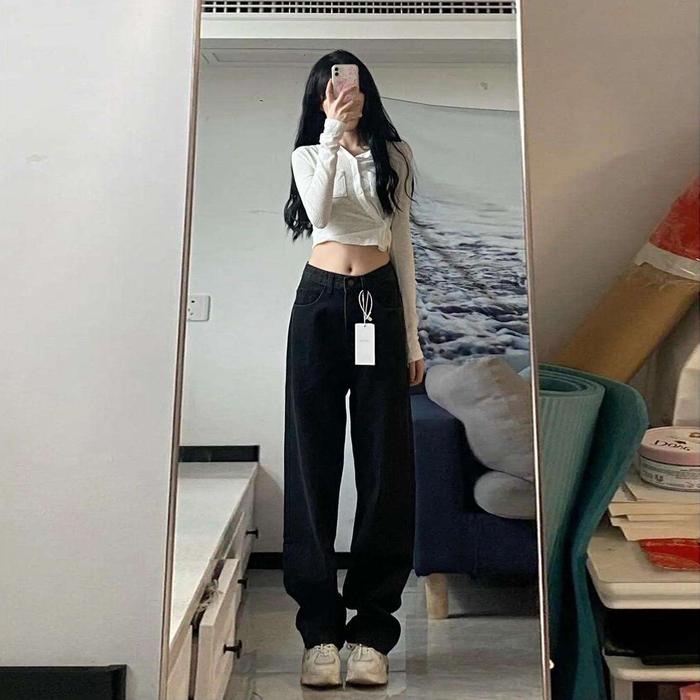 LULU-JEANS NEW KOREAN STYLE HIGH WAIST LOOSE MURAH CELANA JEANS PANJANG WANITA - PREMIUM BIRU RETRO8563, S