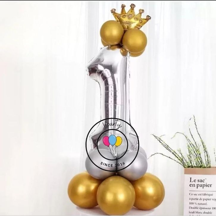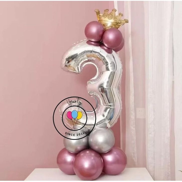 Paket Balon Angka Ulang Tahun Jumbo Ulang Tahun Mahkota Chrome