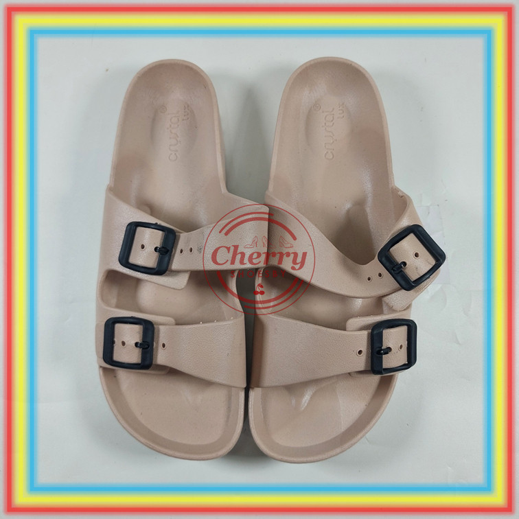 AJA CL815-1 SANDAL SELOP WANITA CRYSTAL LUX SENDAL SLOP CEWEK GESPER BAN 2 KARET LENTUR EMPUK GLANZTON