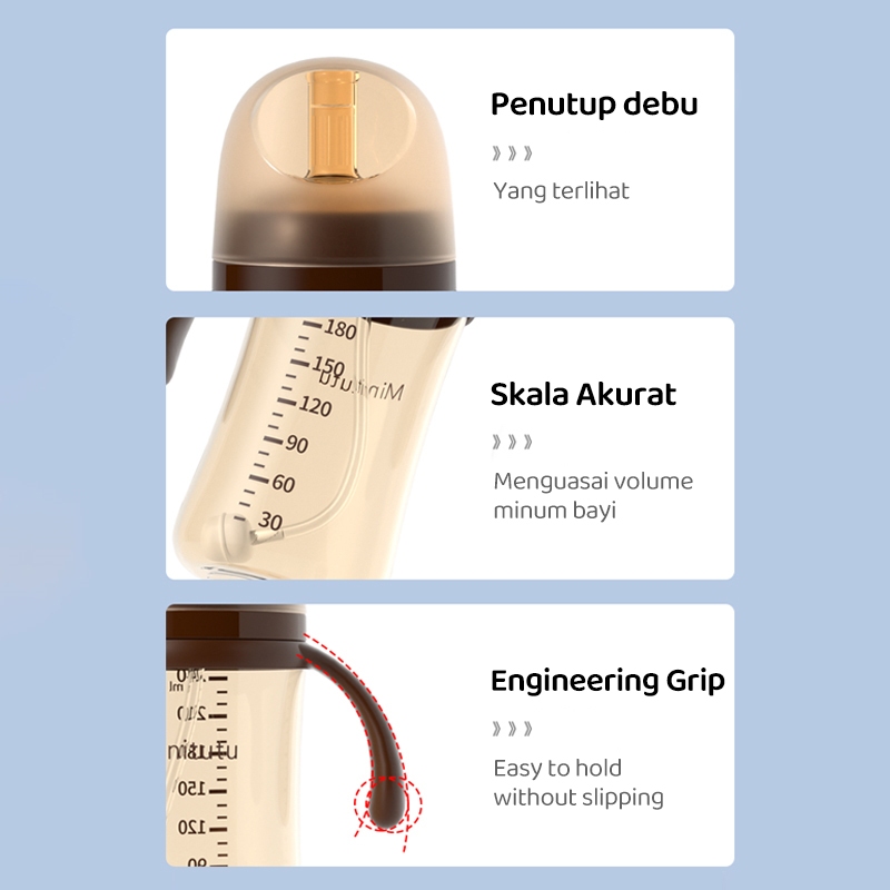 Minitutu Botol Susu Bayi (WIDE NECK) PP Nano Perak Botol Susu 3 IN 1 puting susu Gravity Ball Anti Kolik 240Ml/300Ml Bebas BPA