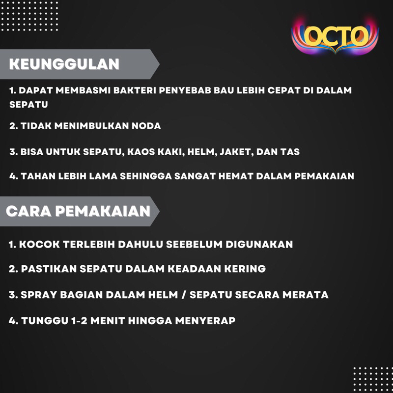 OCTO PARFUM HELM SEPATU ANTI BAKTERI & BAU | SPRAY SHOE PERFUME PENGHARUM PEWANGI RUANGAN INTERIOR MOBIL JAKET TAS