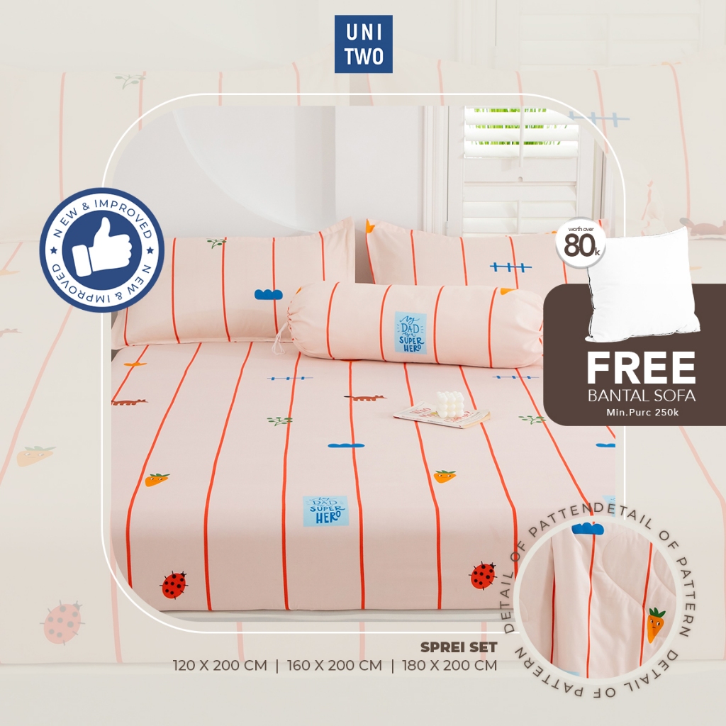 UNITWO PREMIUM SOFT TOUCH [SEPREI SET ONLY] - SPREI SET MOTIF PREMIUM QUALITY DENGAN SARUNG BANTAL DAN GULING KARET