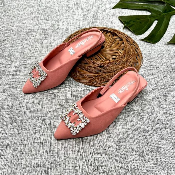 SEPATU HEEL PESTA WANITA TERBARU DAN TERVIRAL/SEPATU HEEL PESTA ZR099/SEPTU HEEL BUSTONG BAHAN SWEEDE/BLUDRU