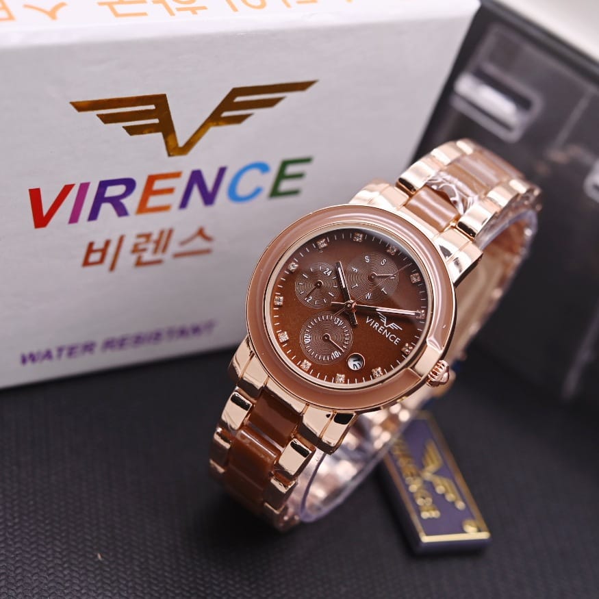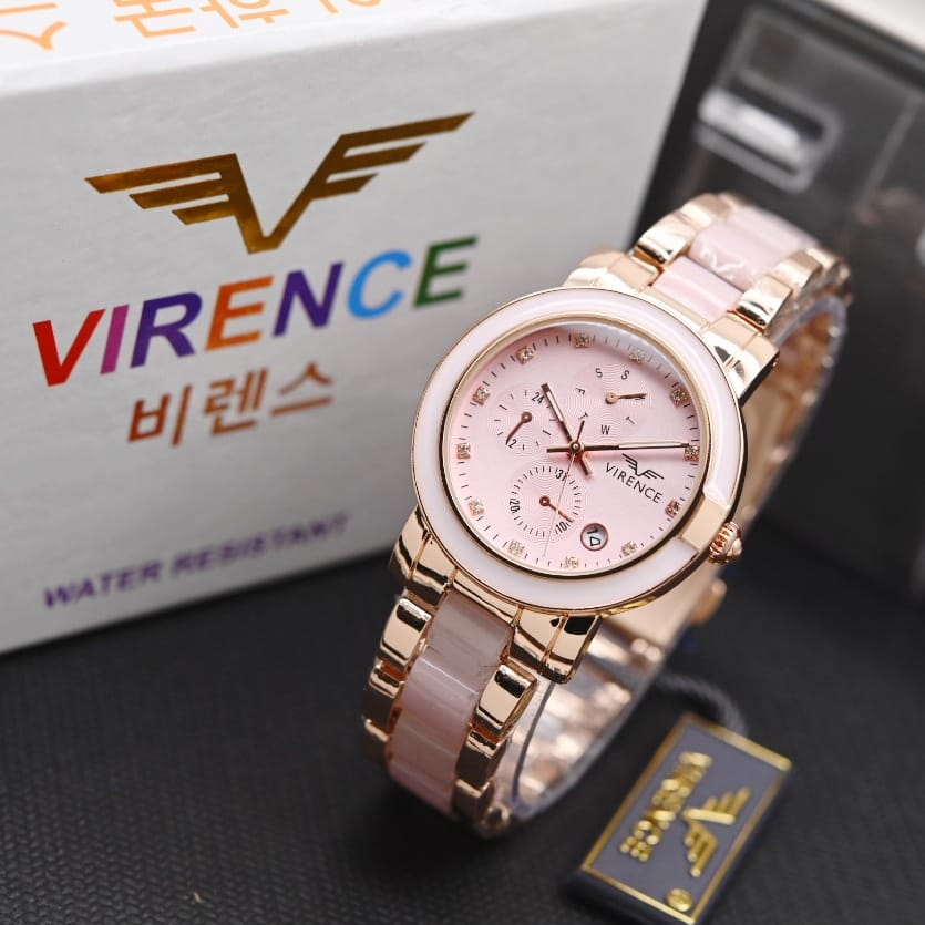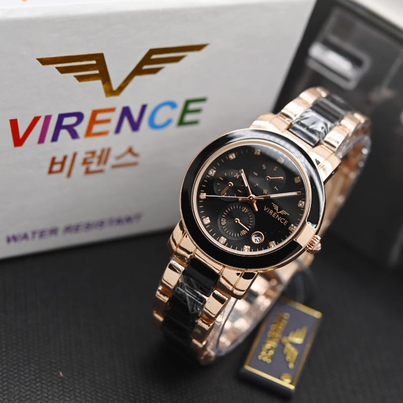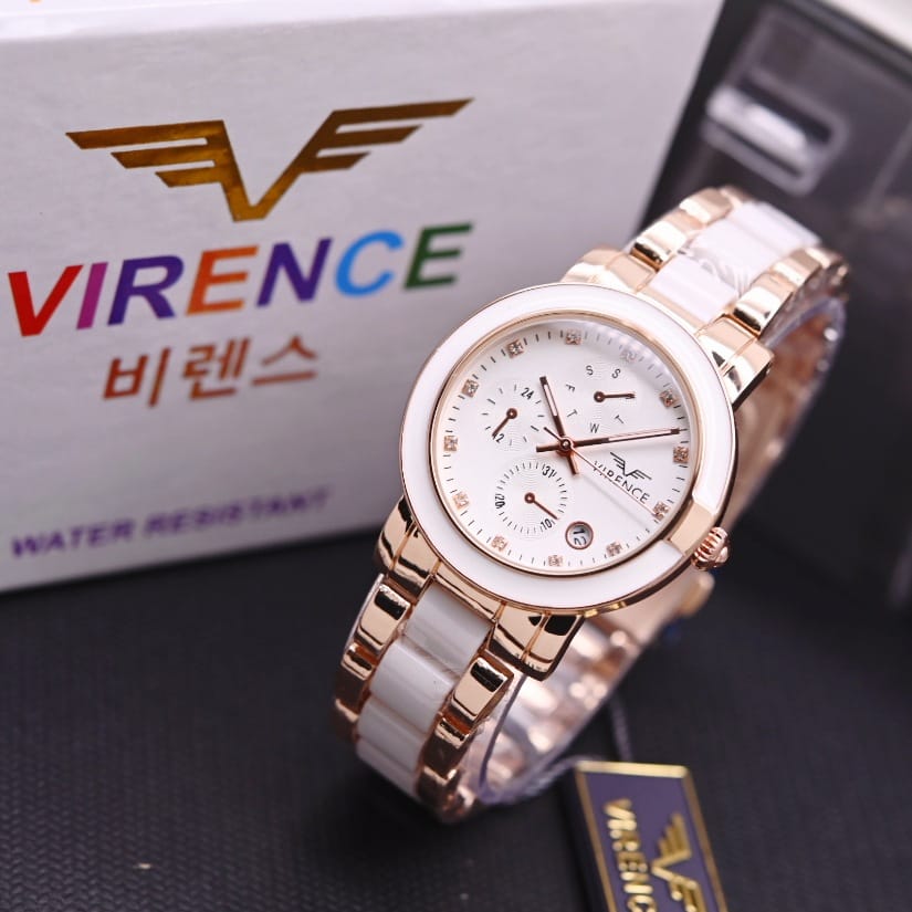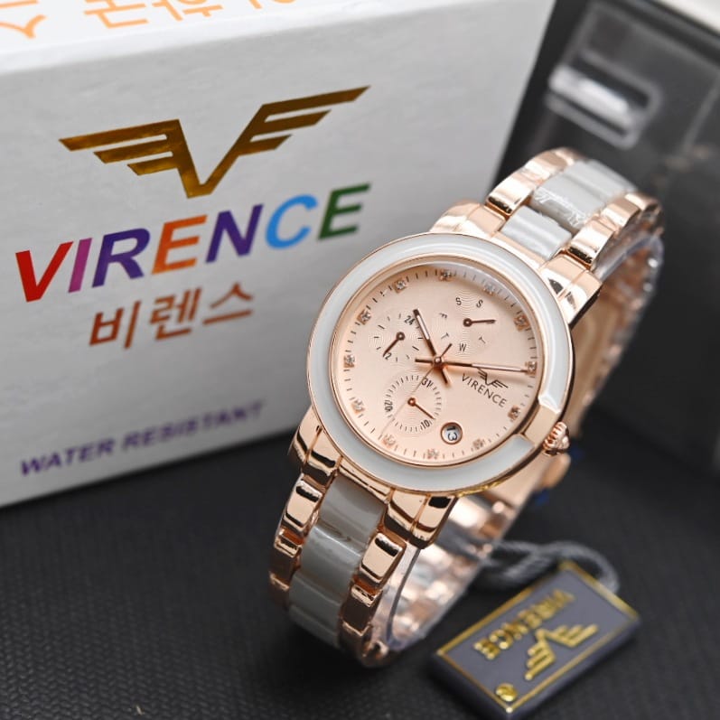 Jam Tangan Wanita Virence Ceramic VM 2003 Original Analog Korean Style Rantai Stainless Steel Combinasi Free Box Garansi