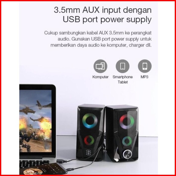 Robot Rs200 Gaming Speaker Aktif Pc Computer Laptop With Aux 3.5mm