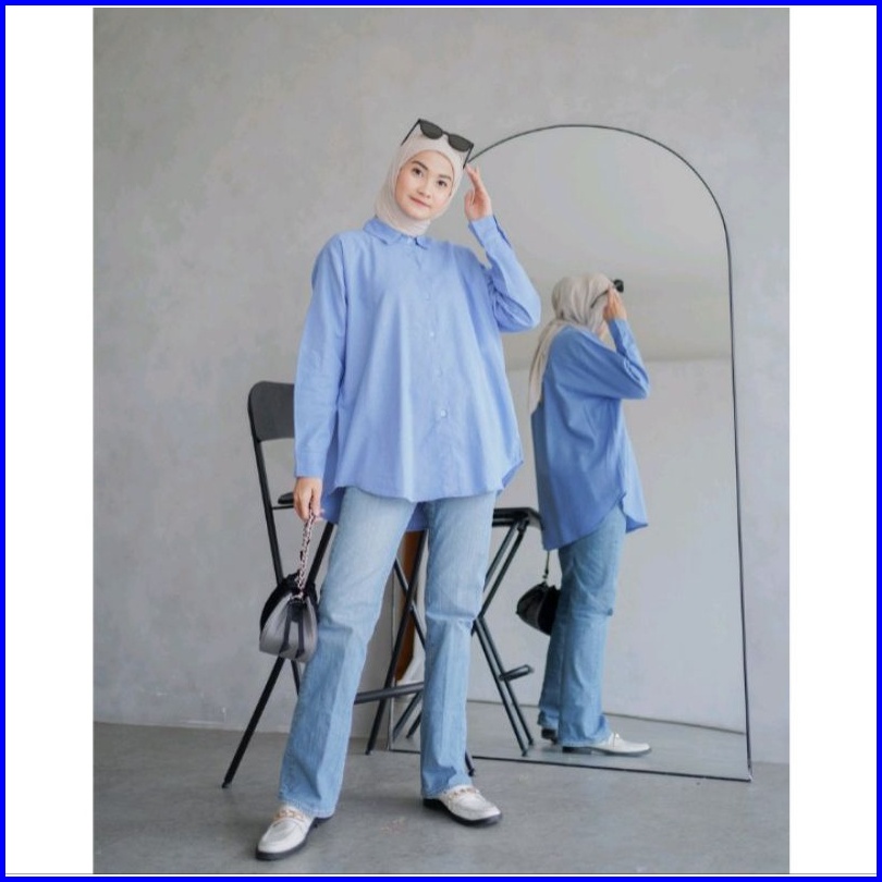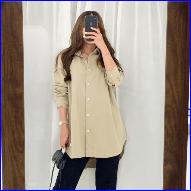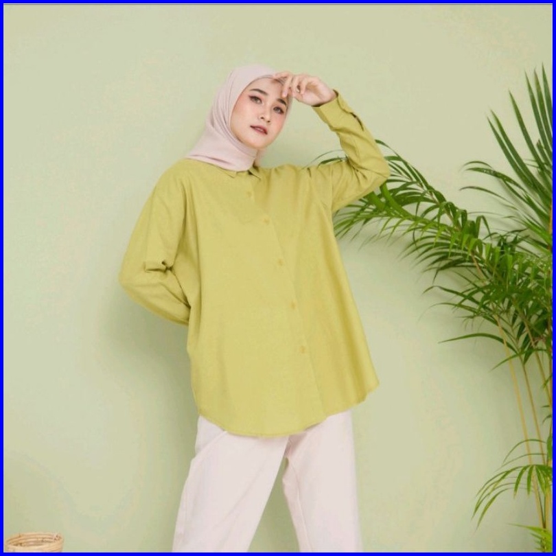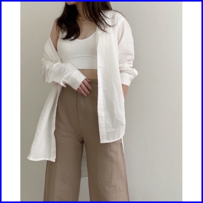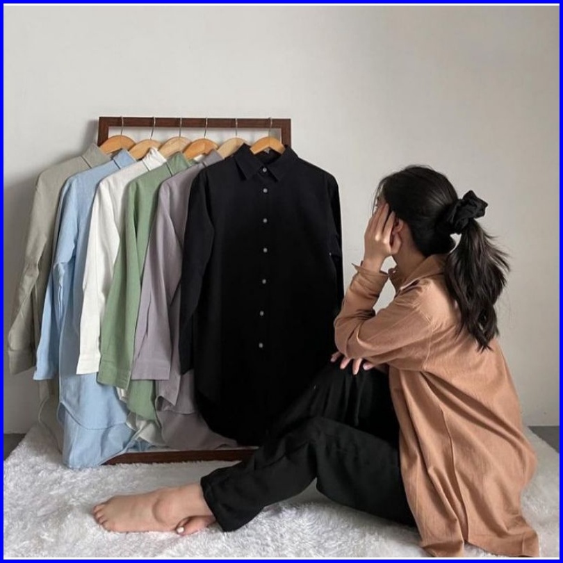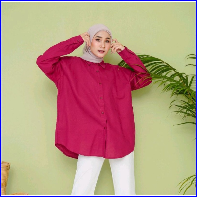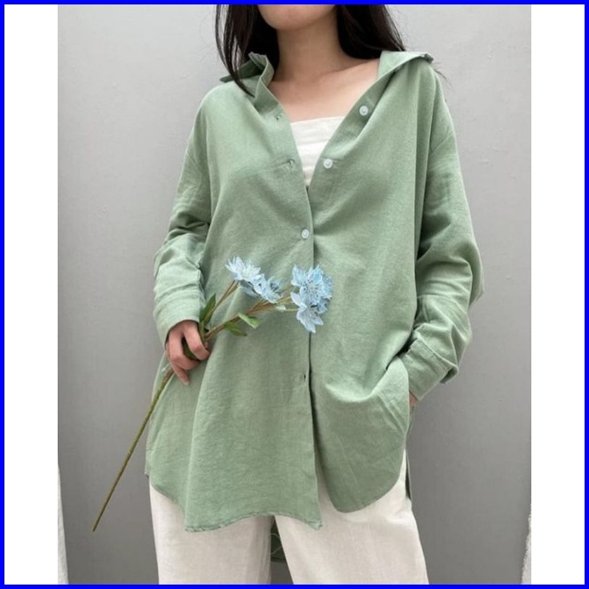 Atasan Kemeja Linen Wanita Oversize Pocket - Kemeja Basic Wanita