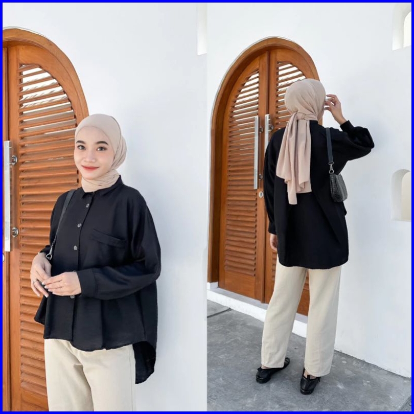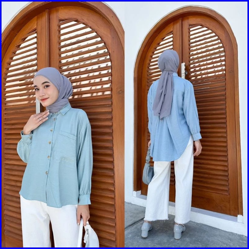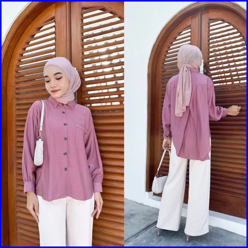 Mia Blouse Polo Linen - Atasan Wanita - Kemeja Oversize Wanita - Kemeja Variasi Belah Belakang