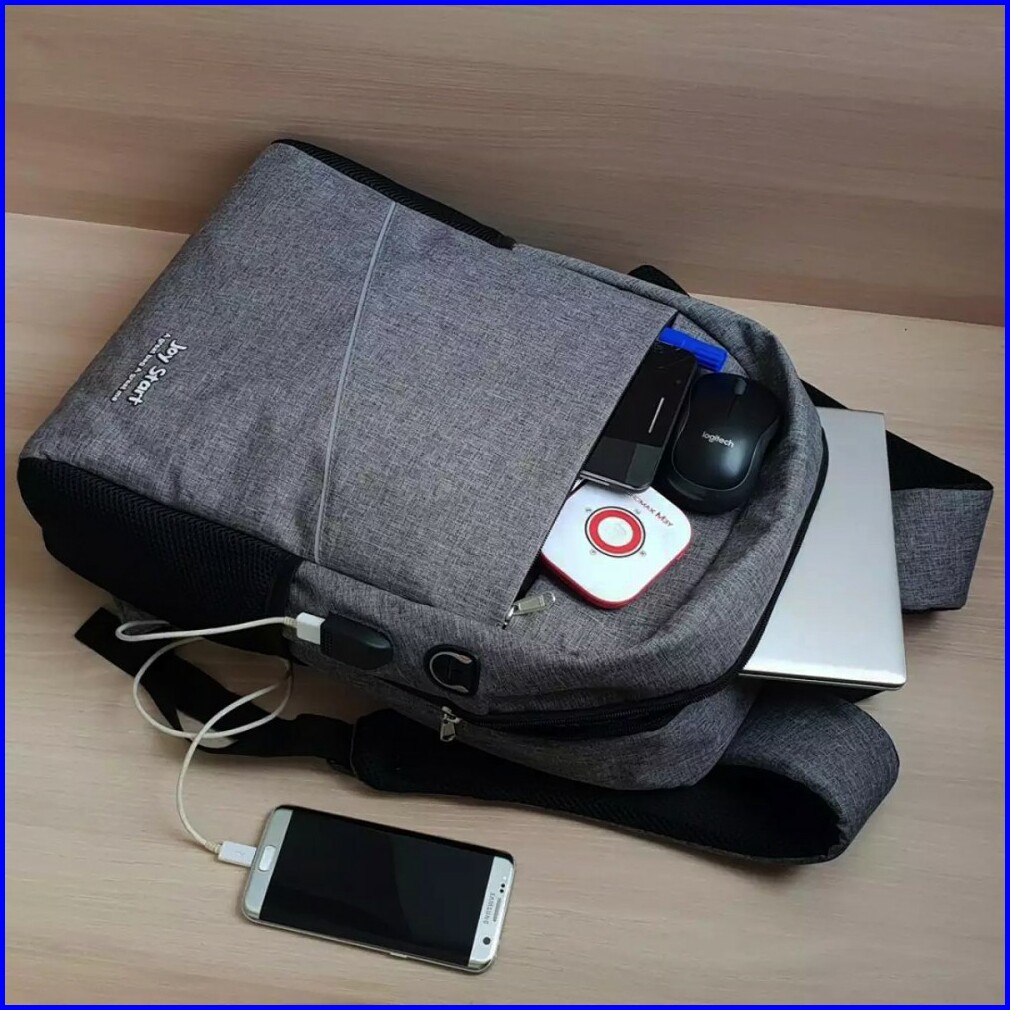 4.4 Gratis Ongkir Setiap Hari Tas Ransel Usb Js221 Tas Pria Wanita Backpack Laptop Size 17 Inchi Bahan Kanvas Halus-abu