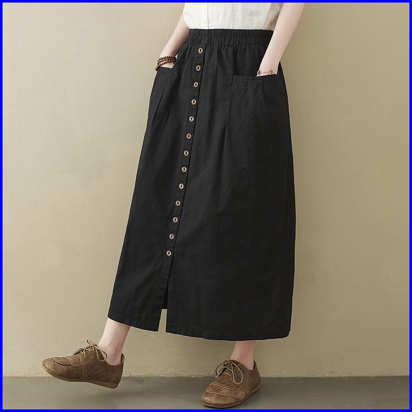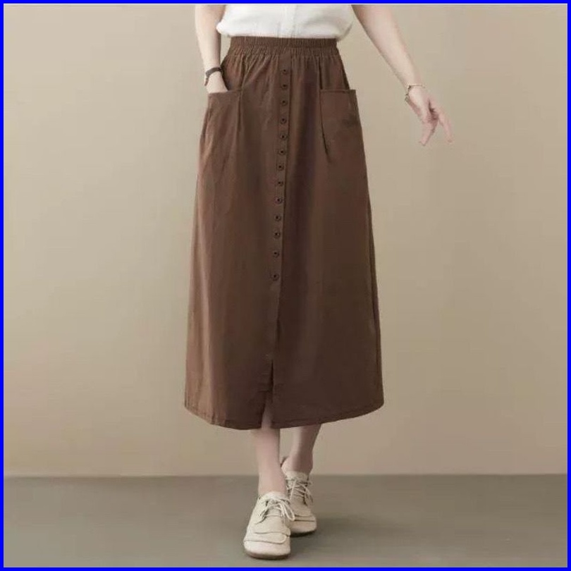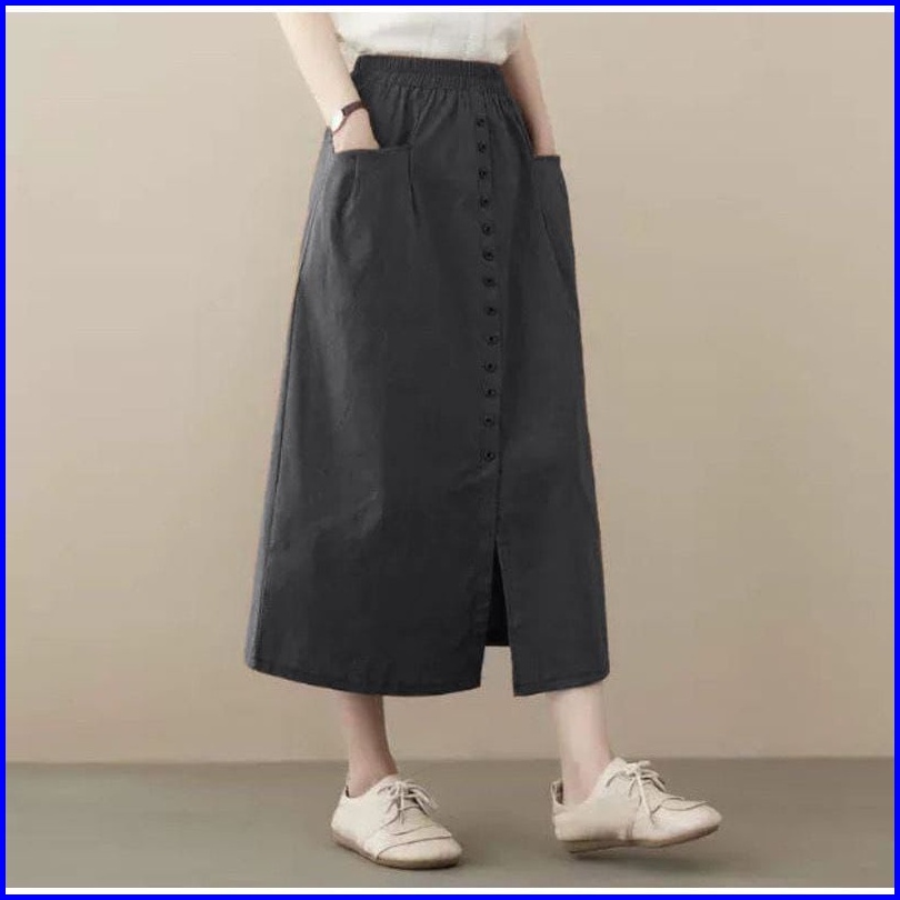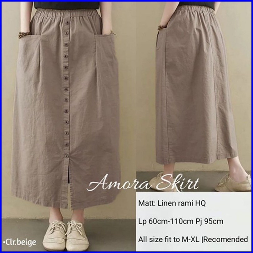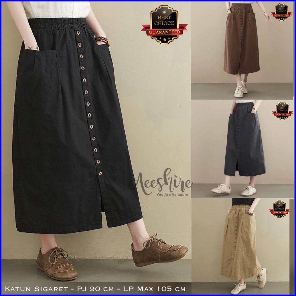 Amora Skirt Rok Kancing Panjang Wanita Bahan Katun Sigaret Amora Maxi Skirt