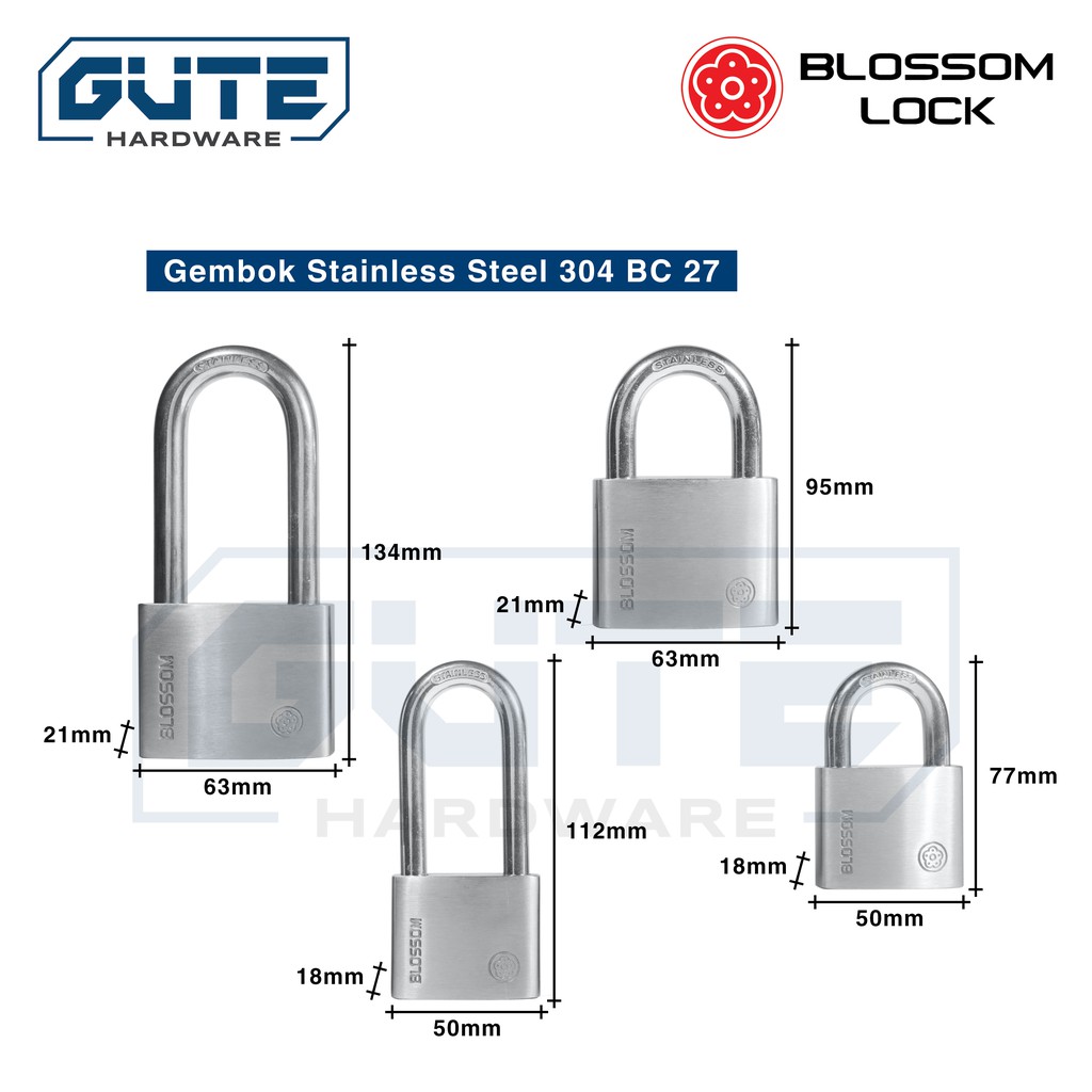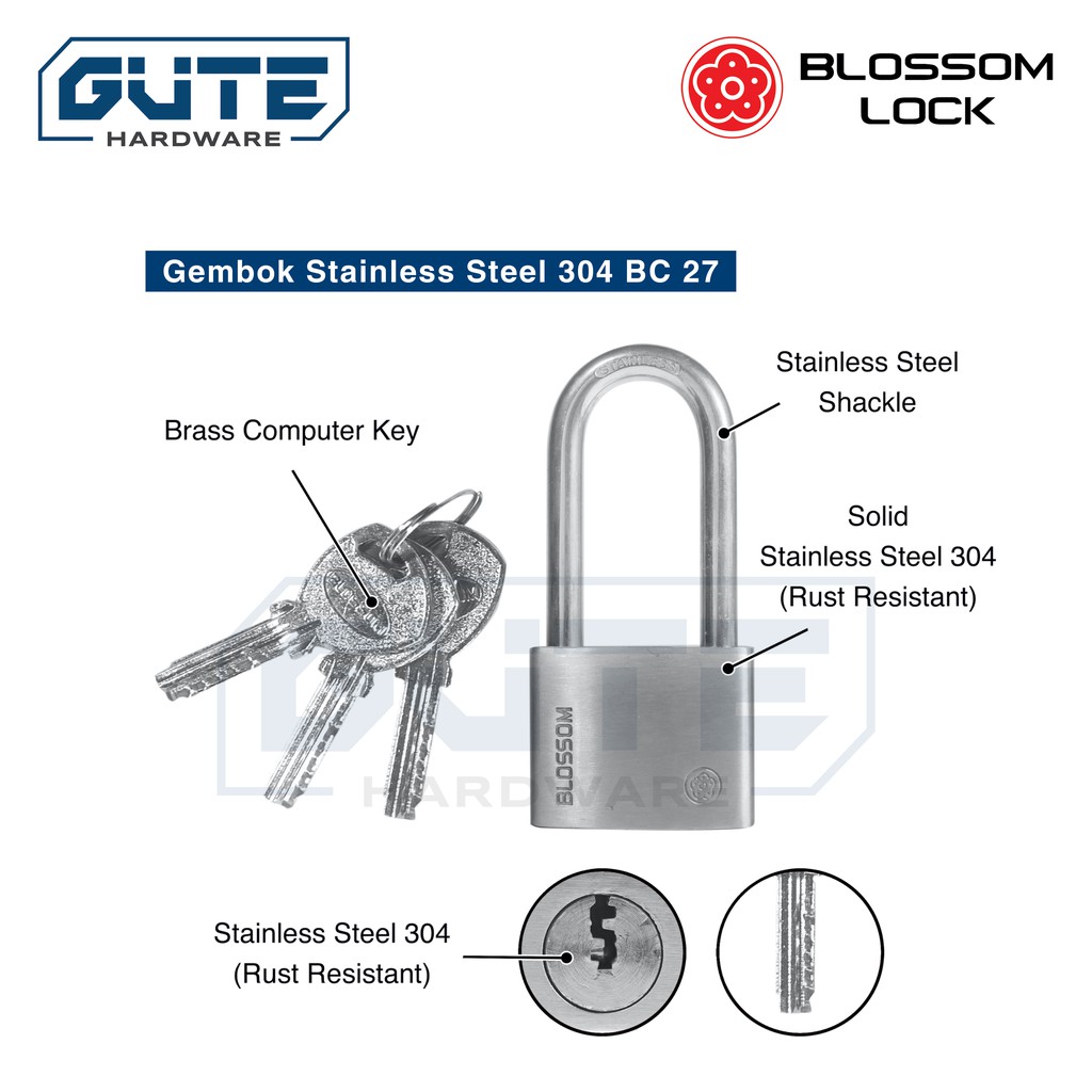 Gembok Stainless Steel 304 Anti Karat “Blossom” Tipe BC 27 Best Seller Untuk Pagar / Kantor Toko