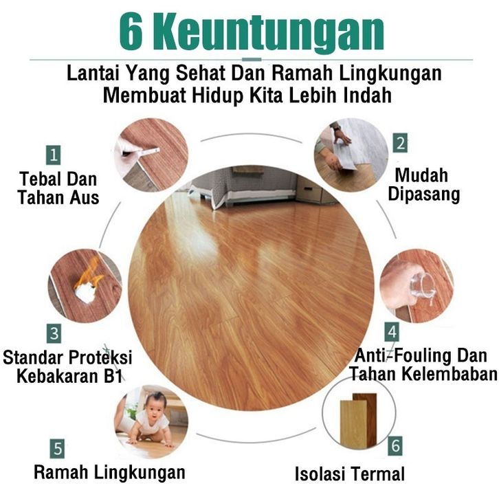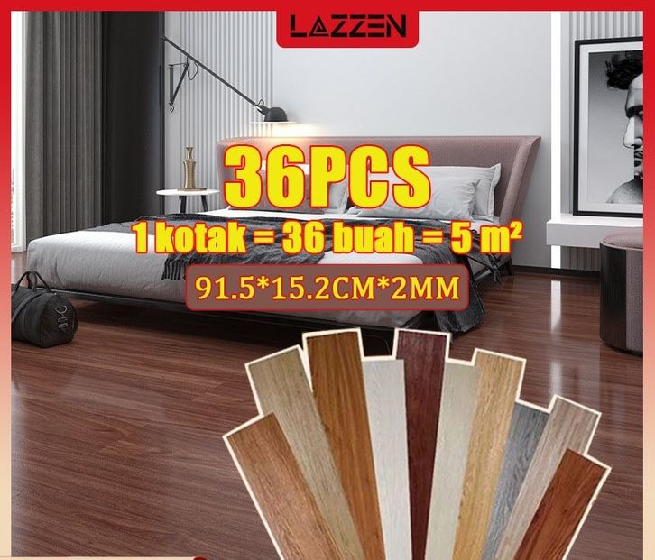 LAZZEN - 1 BOX [36 PCS] KARPET LANTAI VINYL Lantai Vinyl Stiker Perekat Vinyil Lantai Kayu 91.4cmX15.2cmX2mm PVC