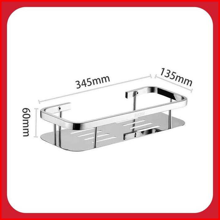 Rak Sampo Sabun Kamar Mandi Stainless Steel Sus 304 Premium Tempat Shampo Dinding Minimalis Modern Kekinian Rak Toilet B