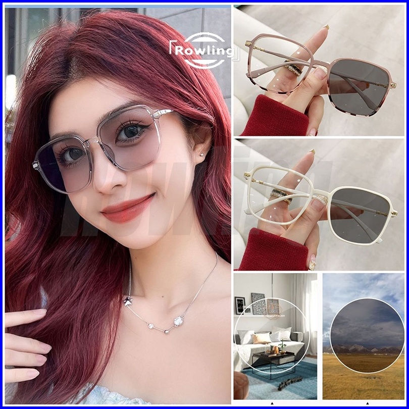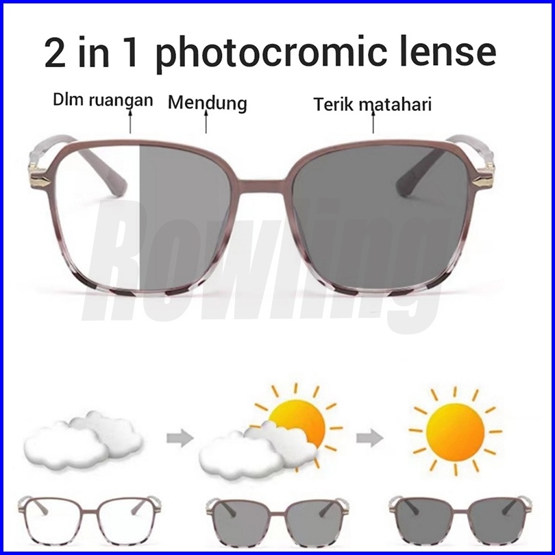 Rowling Pc-326 2 In 1 Kacamata Lensa Photocromic Anti Radiasi Wanita Pria Kacamata Bingkai Titanium Kotak Anti Uv Fotocr