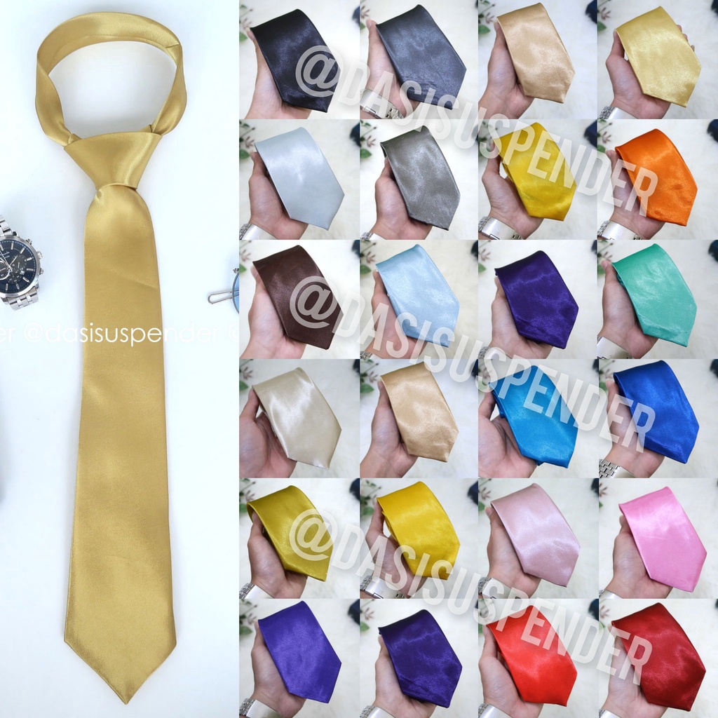 DASI PRIA DASI POLOS DASI PANJANG PRIA UKURAN MEDIUM 3INC (LEBAR 7CM) WARNA LENGKAP HITAM MERAH GOLDS ABU S1LV3R BI