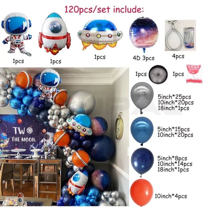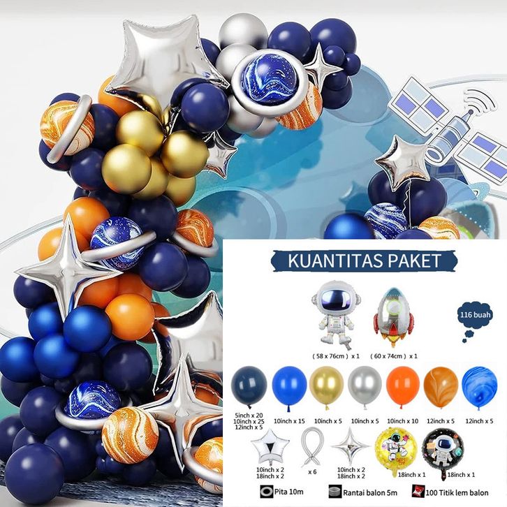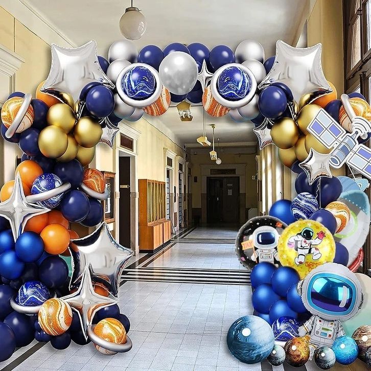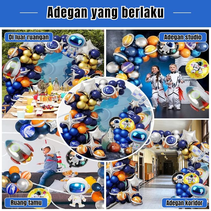 Set Balon Ruang Lengkungan Karangan Bunga Kit Foil Lateks Astronot Roket Untuk Perlengkapan Pesta Ulang Tahun Dekorasi G