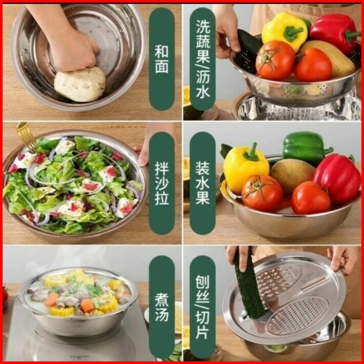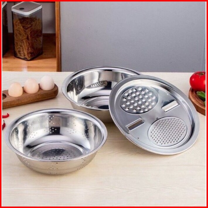 Parutan Baskom Stainless 3in1 Serbaguna Waskom Dapur Wadah Multifungsi 3 In 1 Perlengkapan Rumah Tangga Kitchen Set Alat