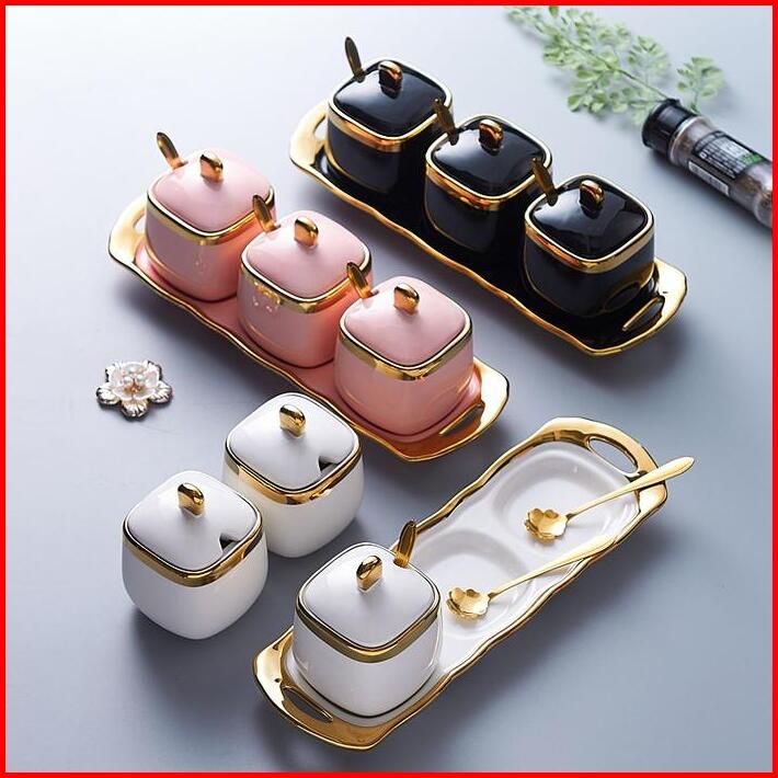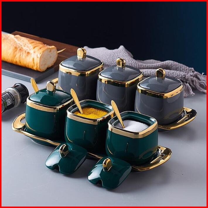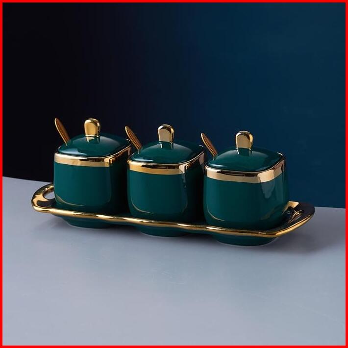 Set Bumbu Keramik Phnom Penh Mewah Toples Bumbu Perlengkapan Dapur Kotak Bumbu Rumah Tangga Set Tiga Potong