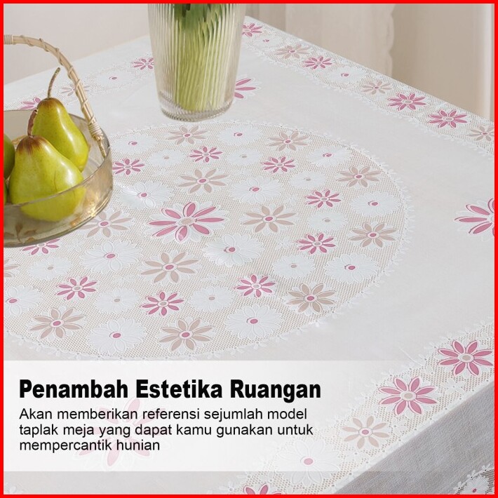 Taplak Meja Makan Persegi 4 Kursi Motif Bunga Ukuran 140x140cm Bahan Pvc Premium Tebal Perlengkapan Rumah Tangga Import