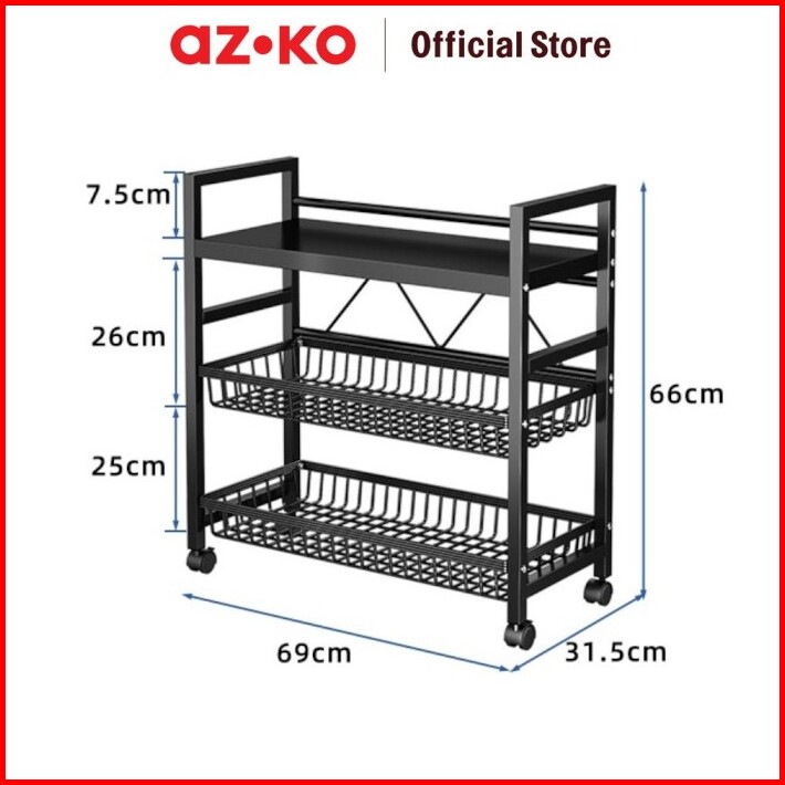 Azko Stora Noir Rak Troli Besi 3 Tingkat