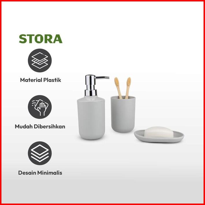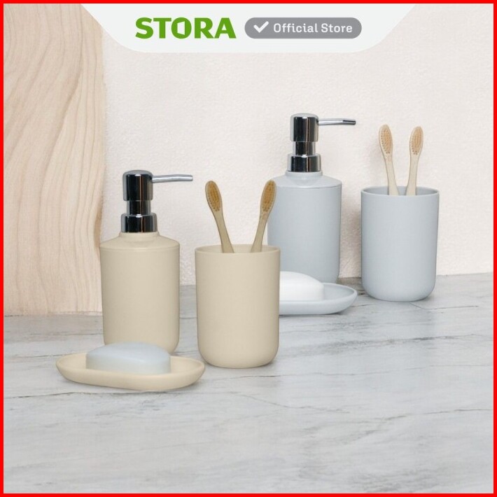 Stora Set Gift Perlengkapan Kamar Mandi Liquid Soap Shampoo Dispenser Botol Sabun Sampo Serbaguna Wadah Sikat Gigi Set A