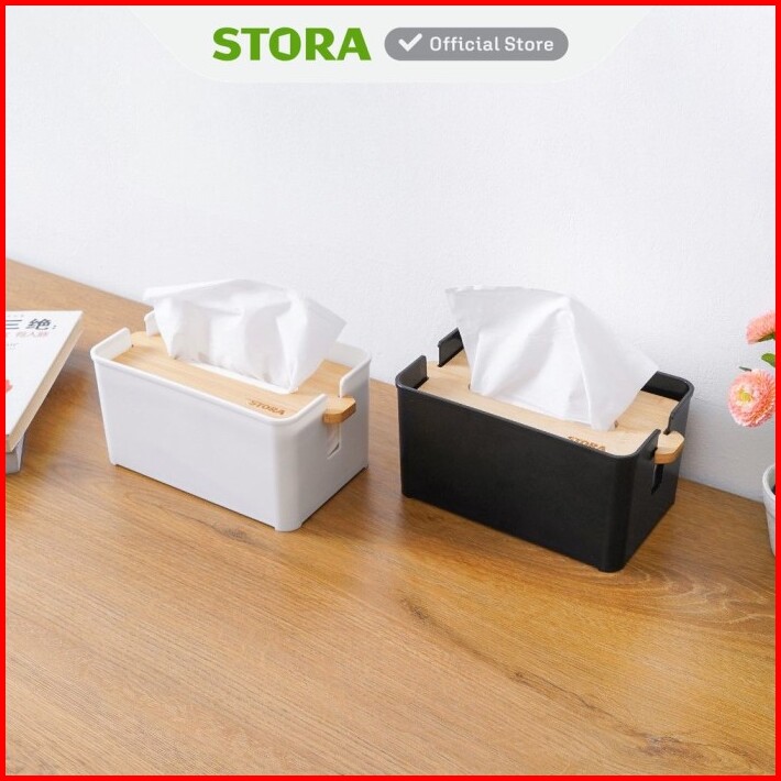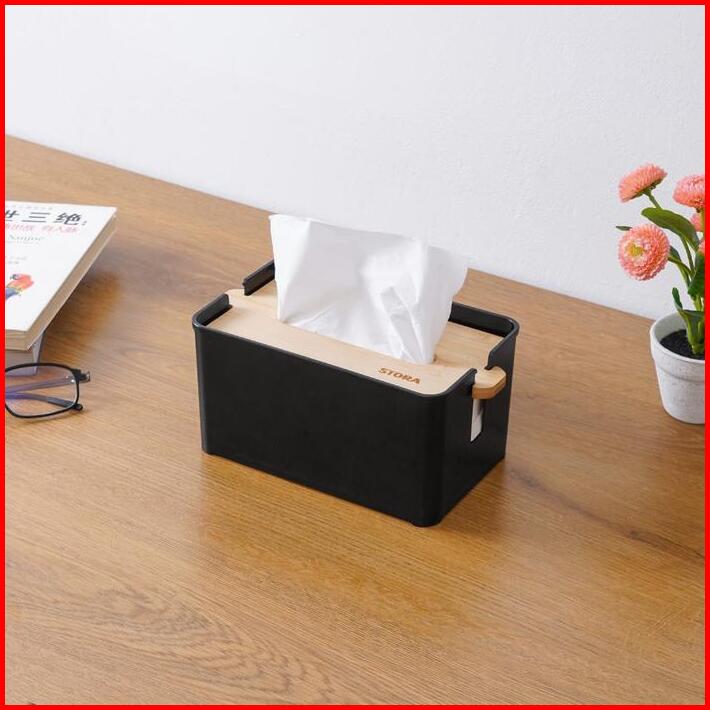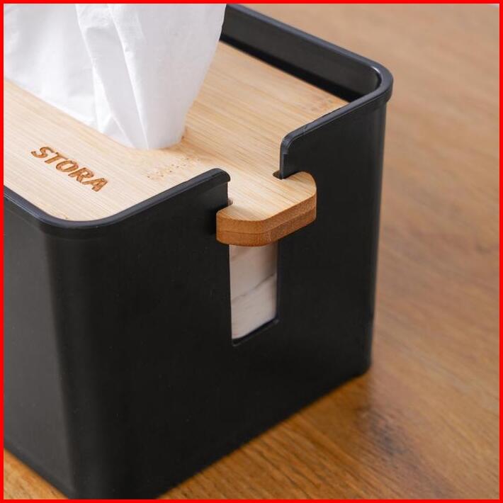 Stora Kotak Tisu Dengan Tutup Bambu Adjustable Box Tissue Box Holder Tempat Tisu Aesthetic Wadah Penyimpanan Tisyu Perle