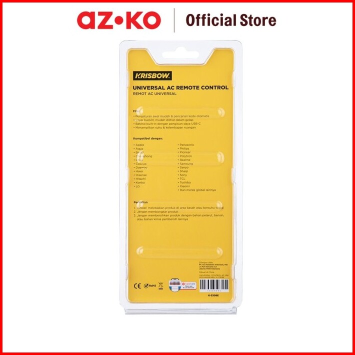 Azko Krisbow Remote Control Ac Universal Rechargeable Remote Control Air Conditioner Remot Pengendali Ac Perlengkapan El