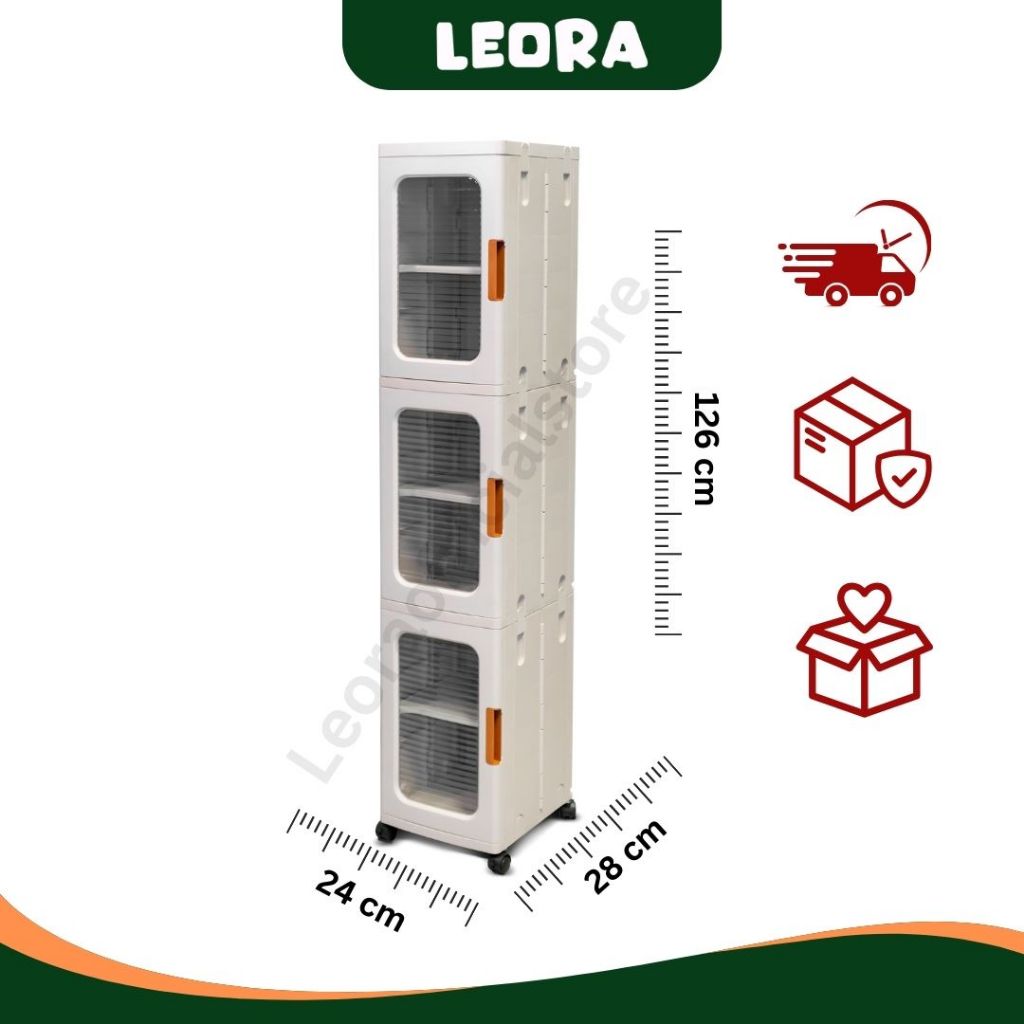 LEORA LEMARI LIPAT PLASTIK LEMARI PAKAIAN LEMARI SUSUN KOLONG LEMARI SERBAGUNA RAK BUKU TOILET DAPUR