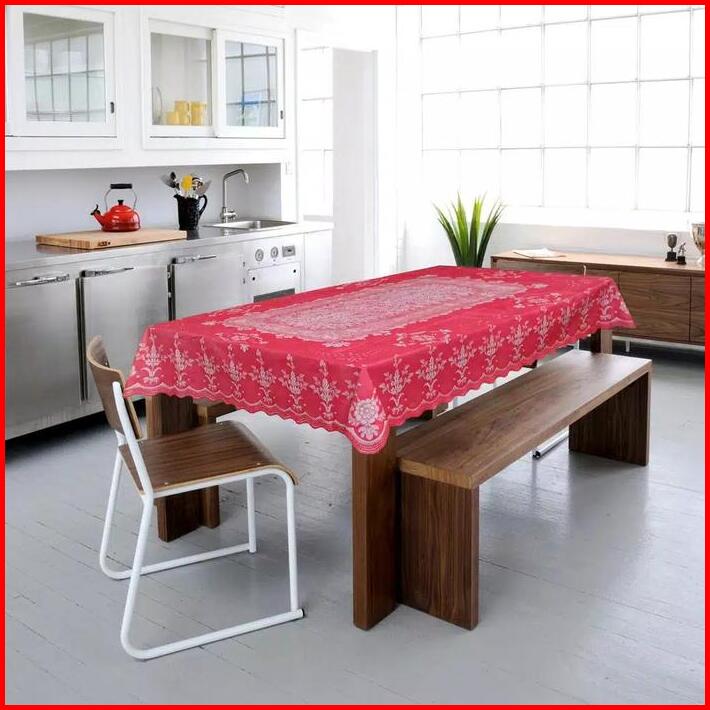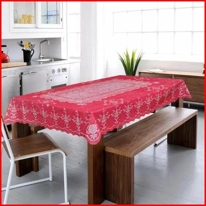 Perlengkapan Taplak Meja Makan Vinyl Lace Anti Air 4-6 Kursi Ukuran 137x183cm Taplak Meja Akan Perlengkapan Rumah Tangga