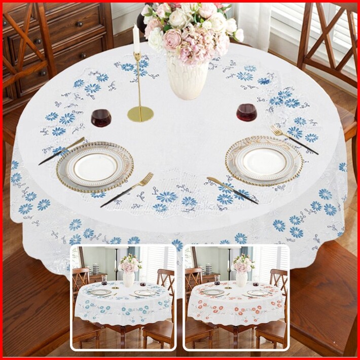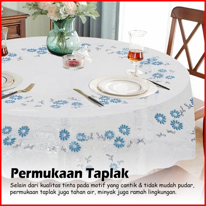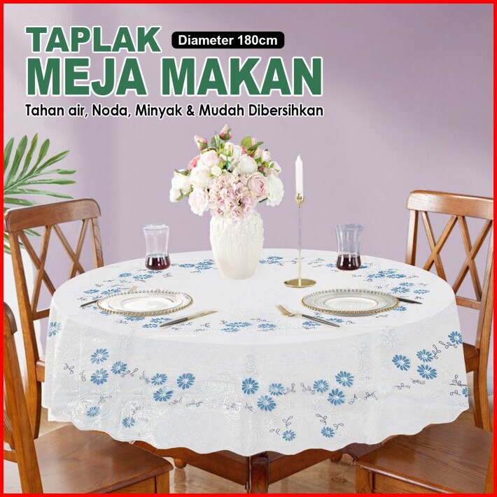 Taplak Meja Makan Super Jumbo Motif Bunga Ukuran Diameter 180cm Bahan Pvc Premium Tebal Peralatan Perlengkapan Rumah Tan