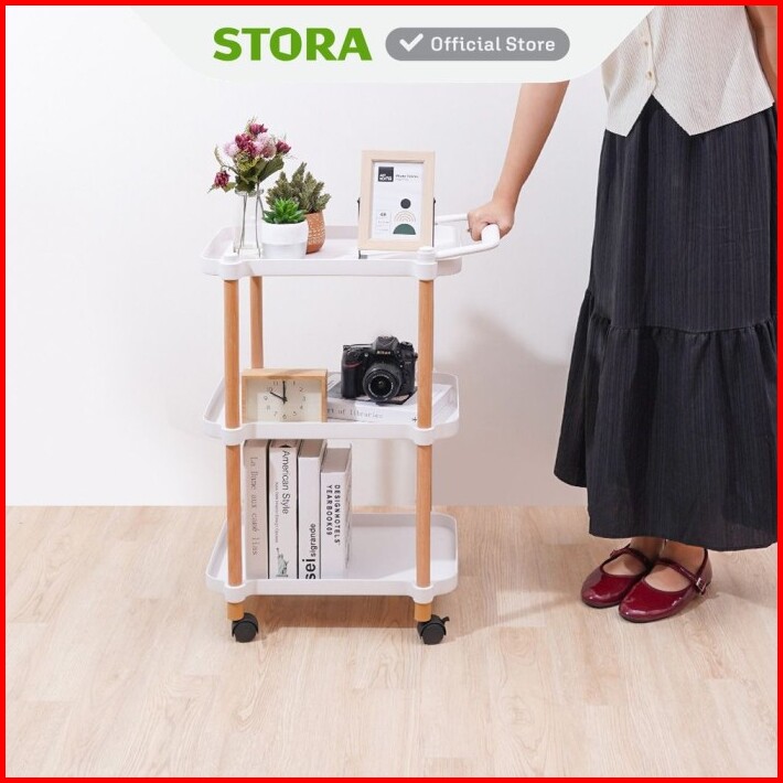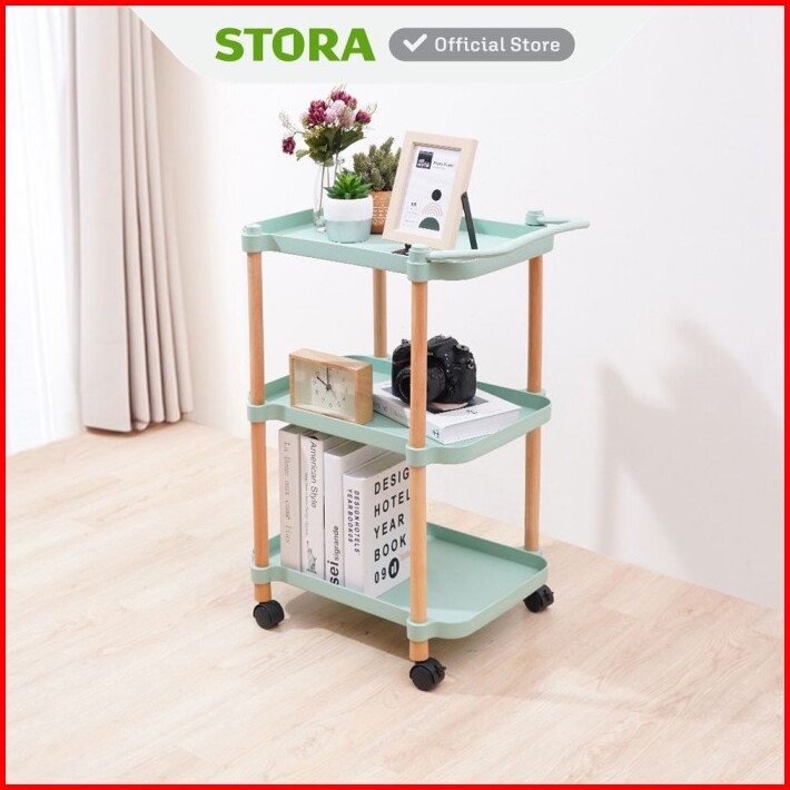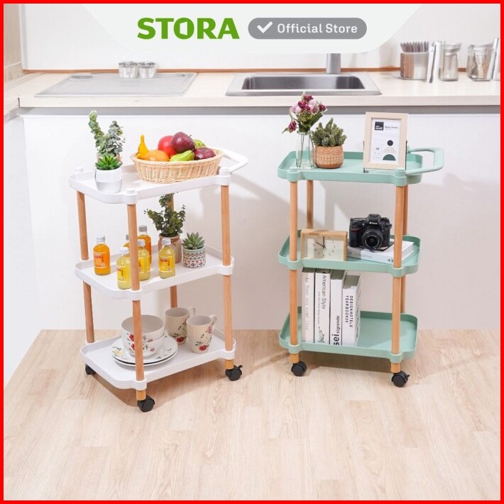 Stora Rak Troli Wood Tempat Penyimpanan Multifungsi Dengan Roda Storage Trolley Wheels Rack Perlengkapan Rumah Tangga
