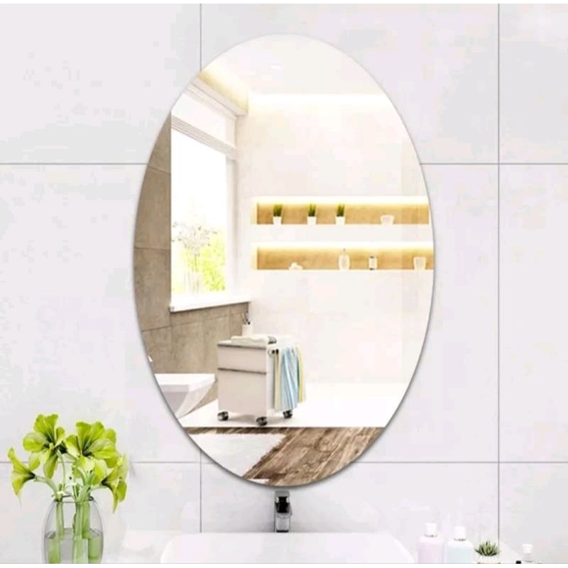 STIKER CERMIN KACA DINDING OVAL ANTI PECAH ACRYLIC KACA CERMIN TEMPELAN WALL STICKER