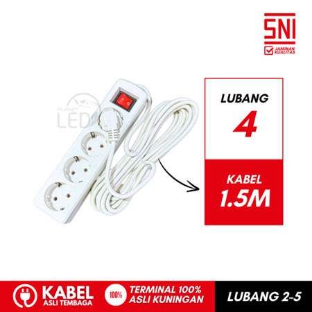 Stop Kontak 4 Lubang + Kabel Panjang 1.5/3/5/10 Meter Terminal Asli Kuningan SNI